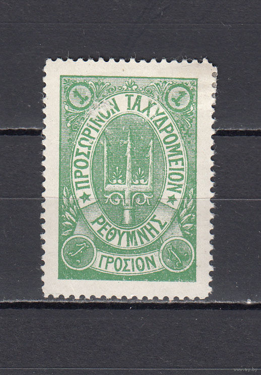 Русская почта. Крит. 1899. 1 марка. 1 гроцион. Зеленая. Без контрольной печати. Крамаренко N 41 (37,5 д)