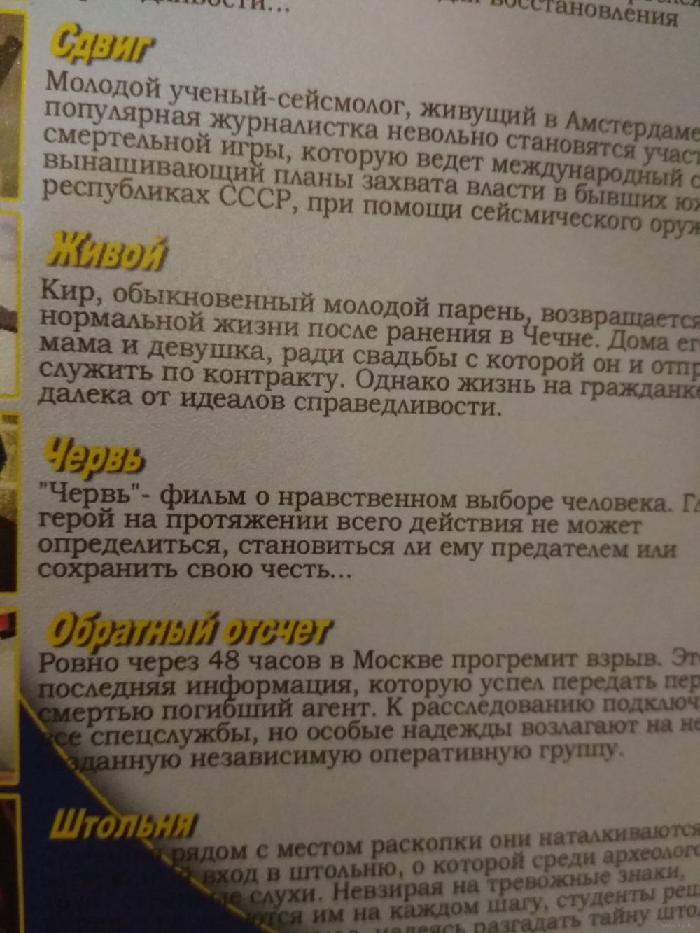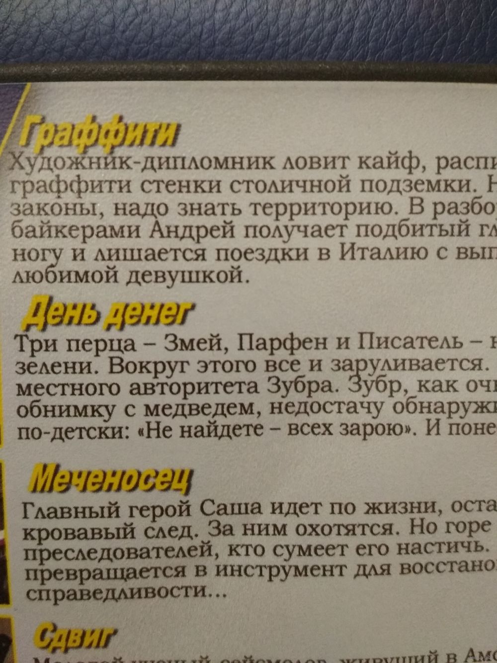 Граффити,День денег,Меченосец,Сдвиг,Живой,Червь,Обратный отсчет,Штольня.