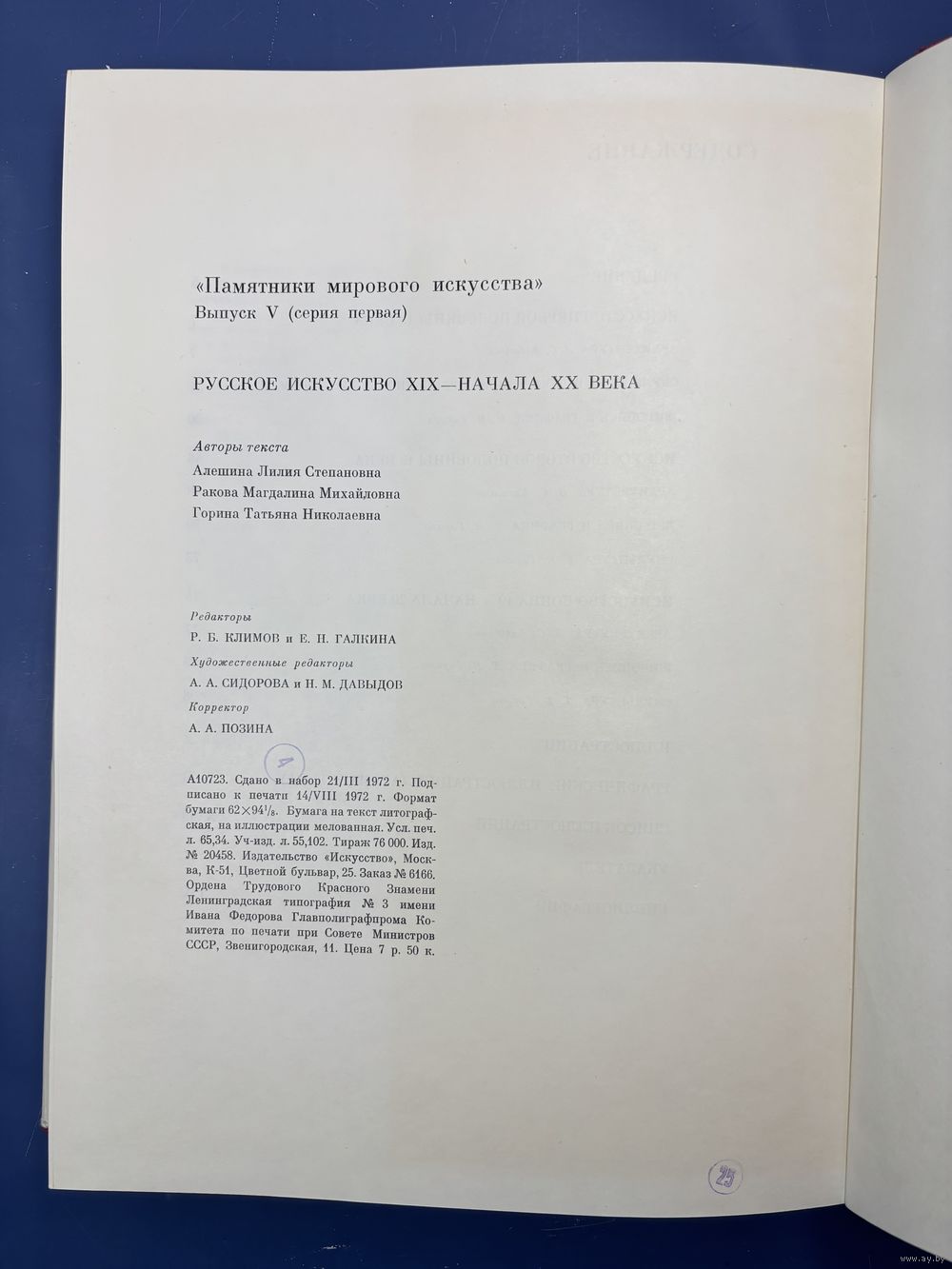 Русское искусство XIX - начала XX века. Искусство, 1972г., 7-91-П