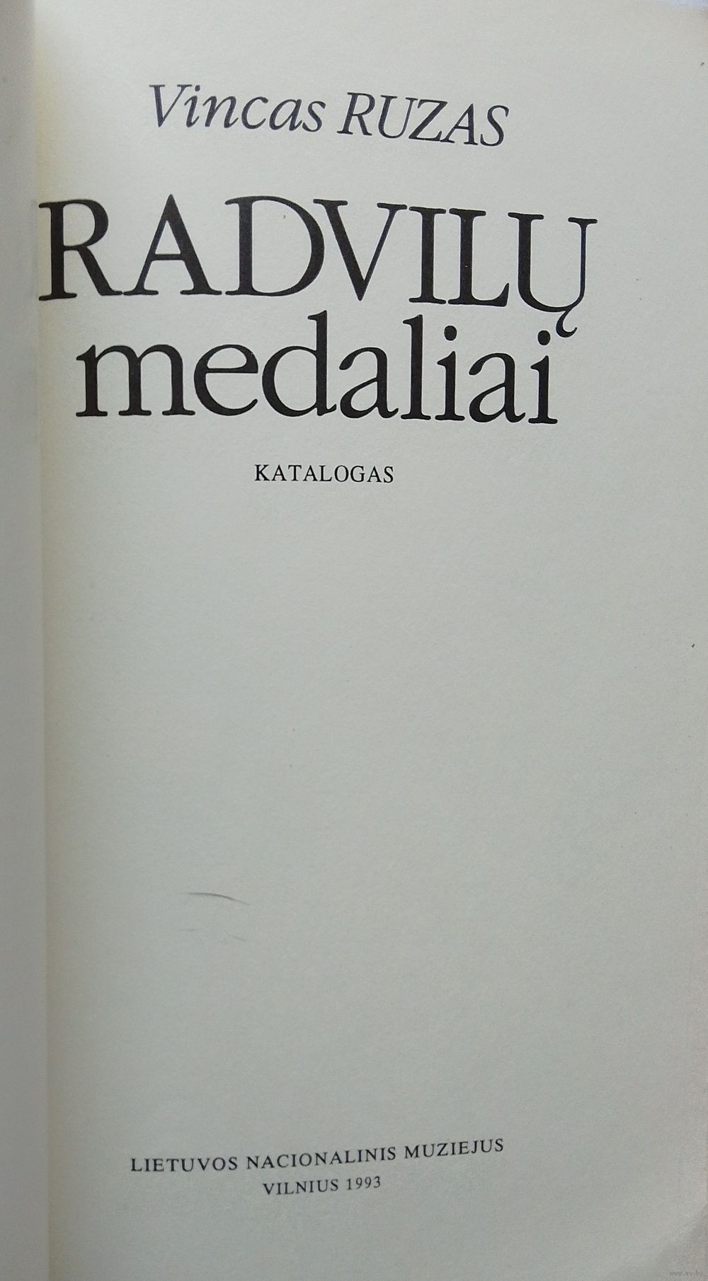 Ruzas Vincas. Radvilų medaliai. Katalogas / V. Ruzas. – Vilnius: Lietuvos nacionalinis muziejus, 1993 - 64 c. Мягкая обложка. На лит. языке. Единственное современное издание с описанием и фотографиями 51 медали по данной теме. Резюме на нем., рус. и белорус. языках.