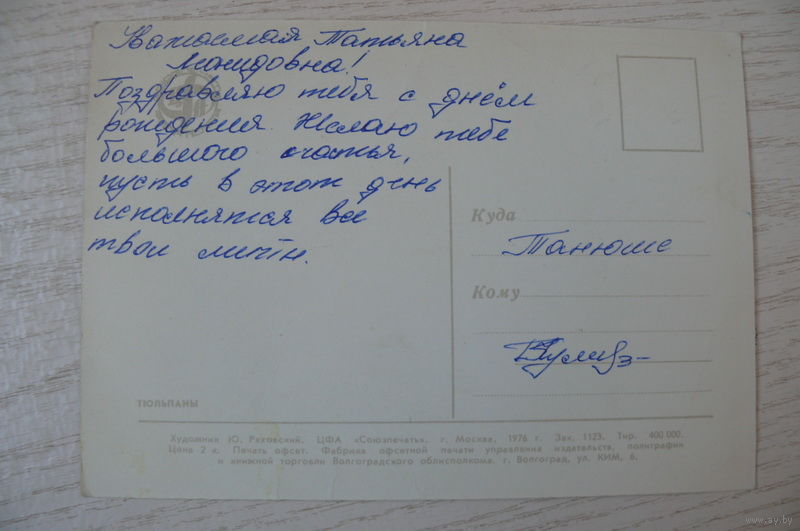 Ряховский Ю., Тюльпаны; 1976, подписана.