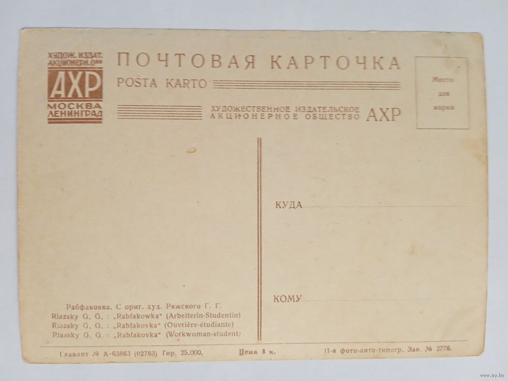Ряжский. Рабфаковка. Издание АХР