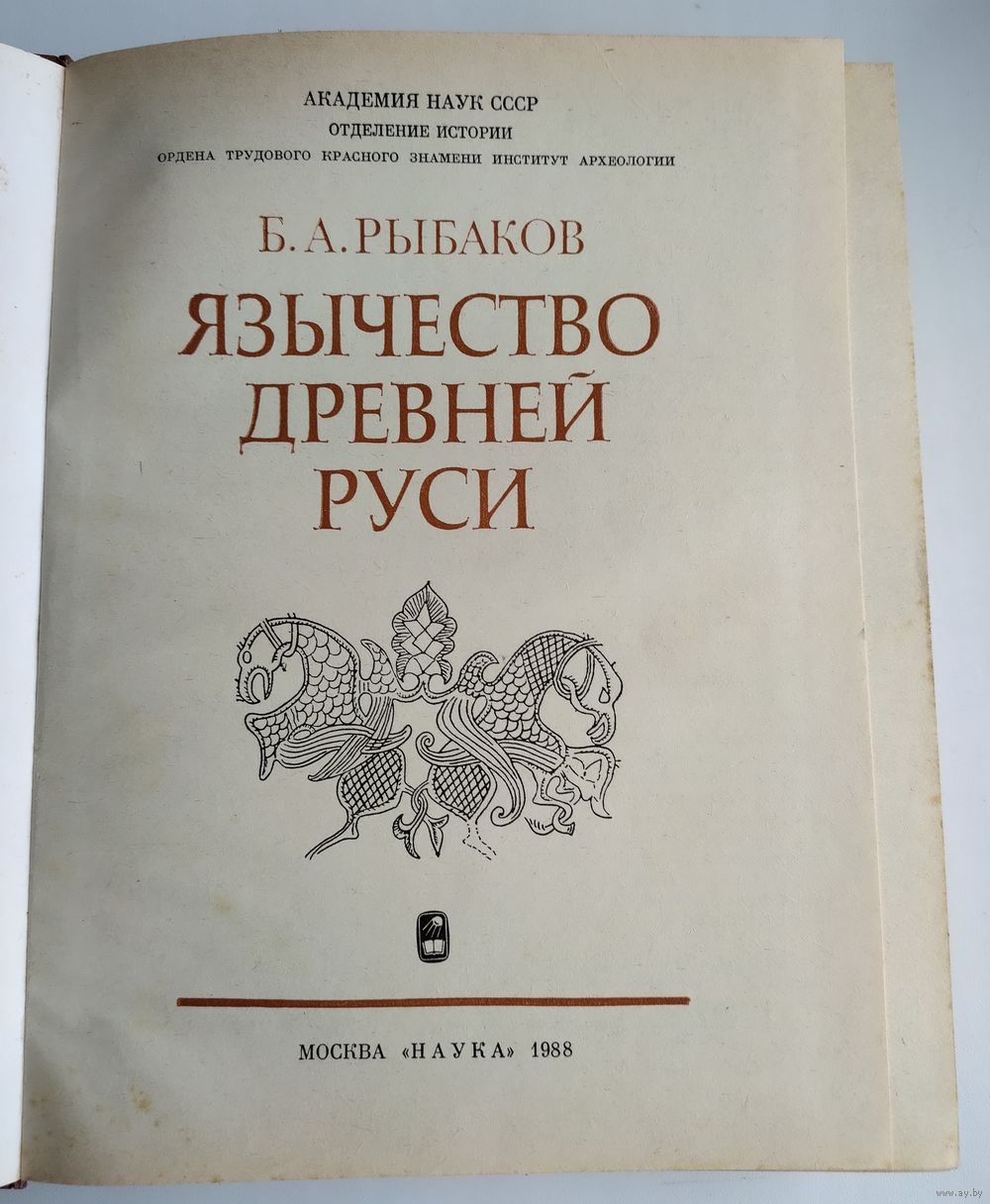 Рыбаков Б. А. Язычество Древней Руси. М.: Наука, 1988г., 784 с., ил., карт.-сх. Твёрдый переплёт, увеличенный формат.
