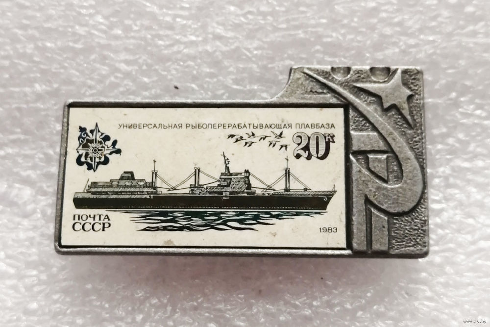 Рыболовецкий Флот. Значок марка Почта СССР 1983 год. Корабль #0470-TP07