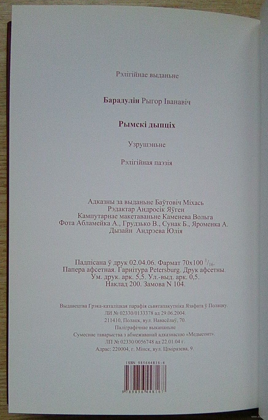 | Издательство | Грэка-каталіцкая парафія ў г. Полацку |