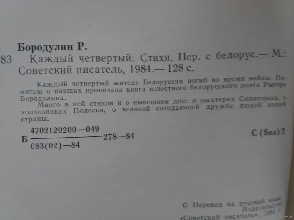 Интересный факт: Сборник «Каждый четвертый» стал важным этапом в представлении творчества Рыгора Бородулина русскоязычному читателю, закрепив за ним статус одного из самых значимых голосов белорусской литературы XX века.