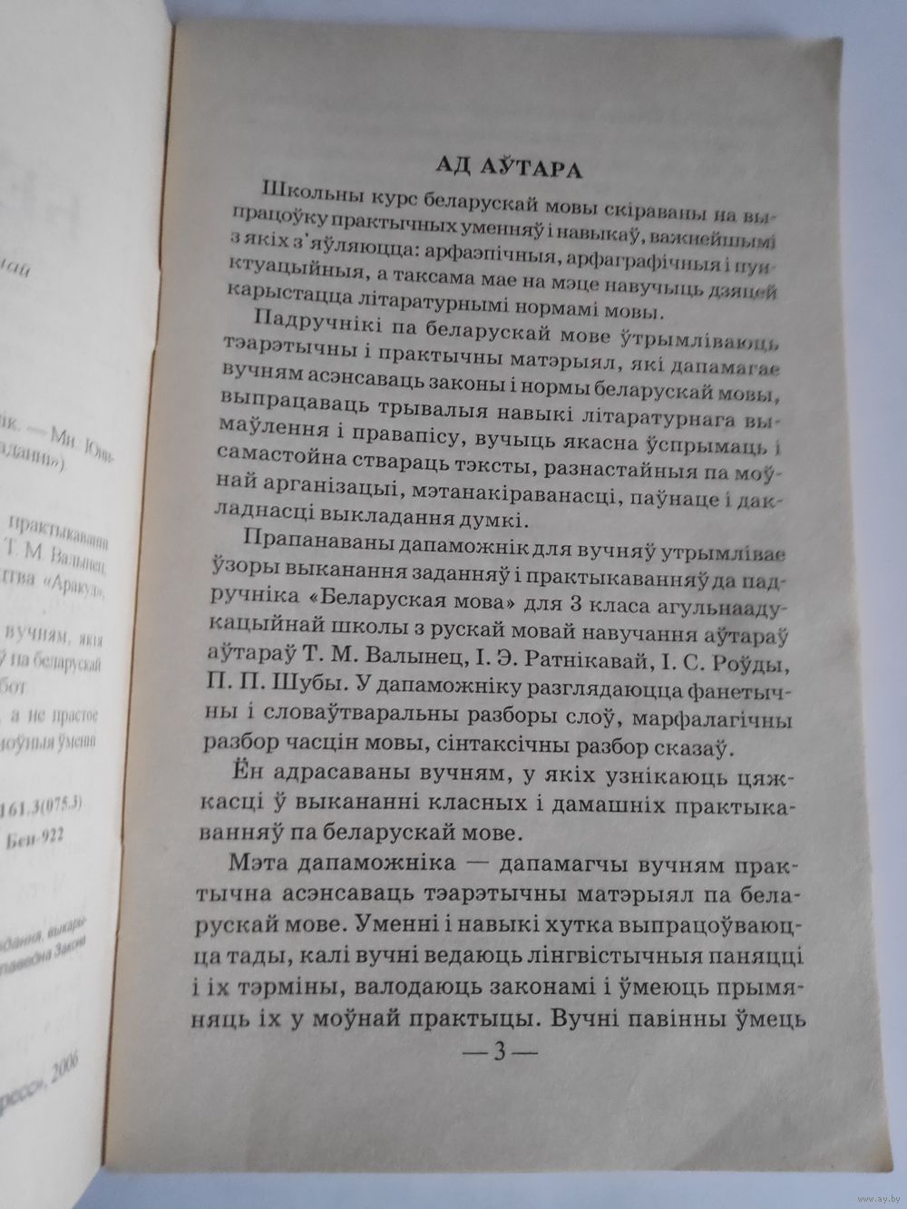 Прызначанае выданне змяшчае адказы на ўсе практыкаванні падручніка «Беларуская мова» для 3 класа (аўтары Т. М. Валынец I. Э. Ратнікава, I. С. Роўда, П. П. Шуба. Выдавецтва «Аракул», 2001).Дапаможнік прызначан у першую чаргу вучням, якія атрымліваюць цяжкасці ў выкананні практыкаванняў па беларускай мове, а таксама іх бацькам для праверкі дамашніх работ.Самастойны аналіз выканання практыкаваняў, а не прастое спісванне, фармулюе ў вучняў практычныя вучэбна-моўныя ўменні і навыкі.