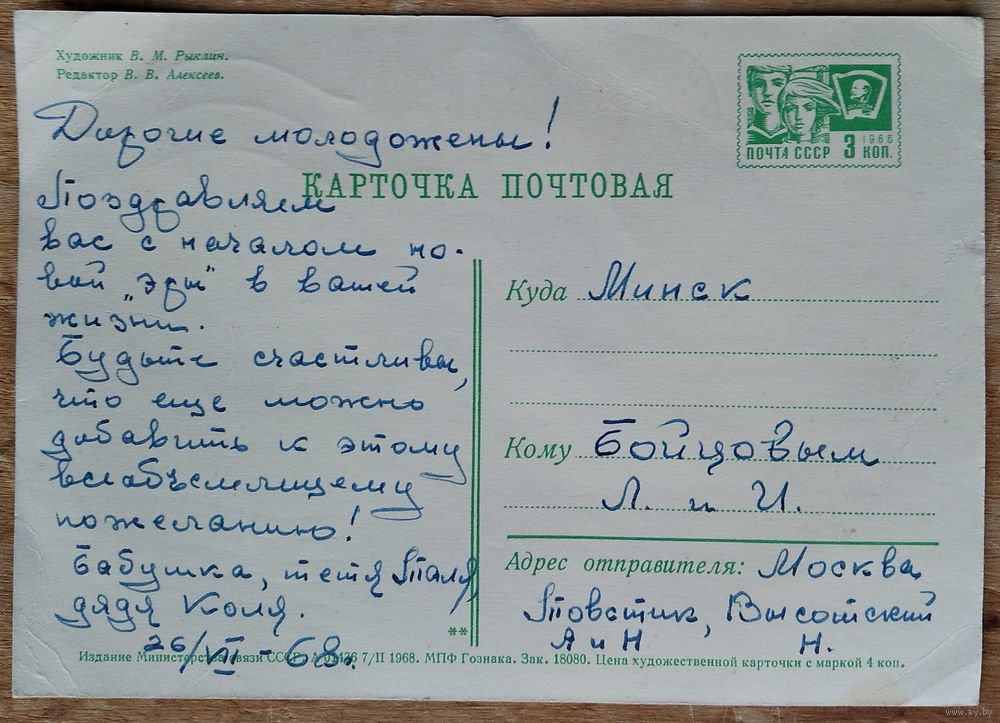 Рыклин В. Будьте счастливы! 1968 г. ПК. Прошла почту