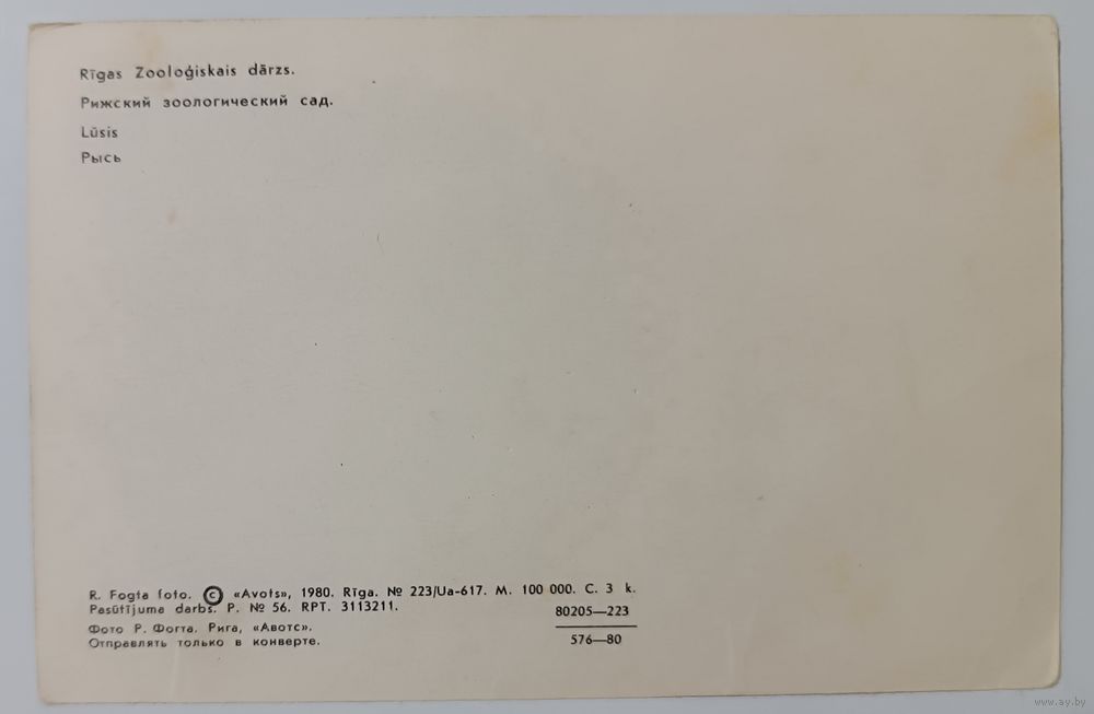 Рысь. Рижский зоопарк. Открытка, 1980г.