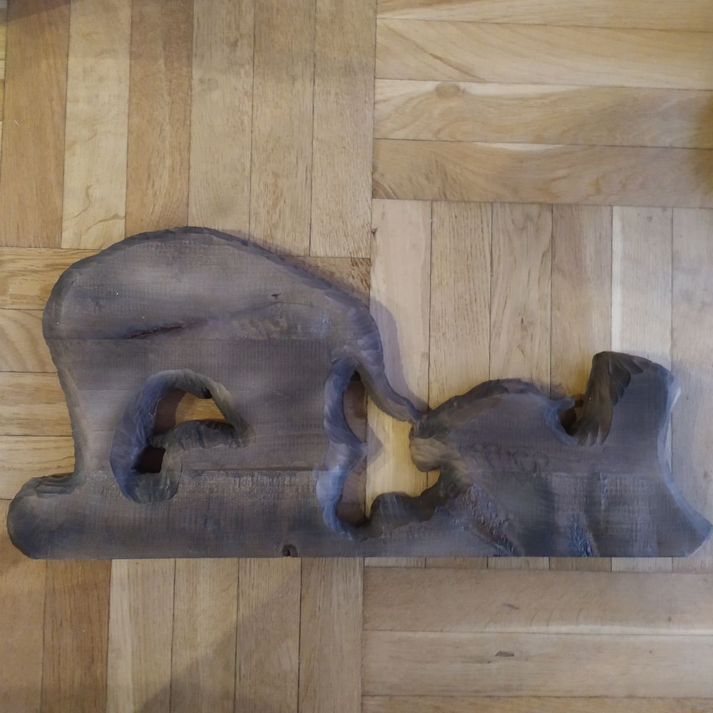 РЫСЬ С КОТЯТАМИ/РЫСЯТАМИ (дерево натуральное, ручная работа)