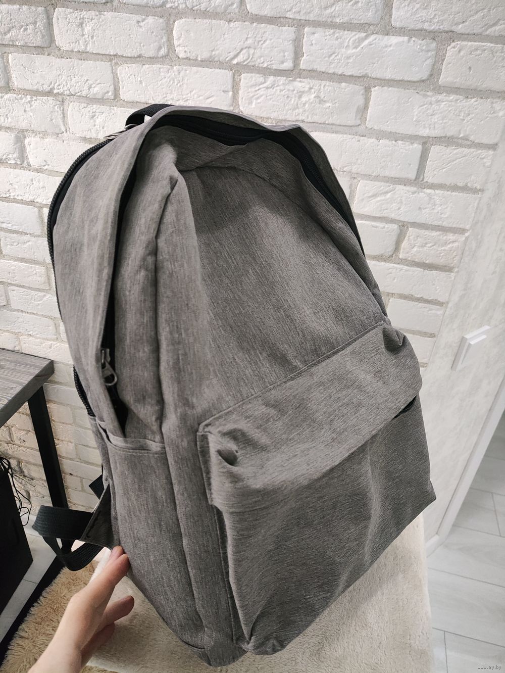 Крепкий и надежный рюкзак, хорошо прошит. Сломалось крепление бегунка на маленьком кармане, все на фото