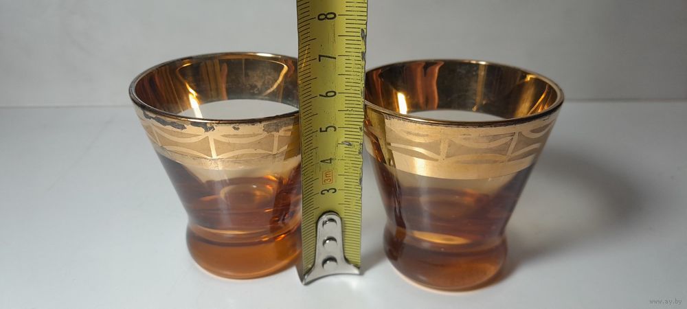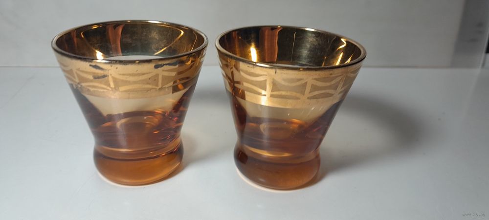 Рюмка 2 шт 50 мл оранжевые с позолотой