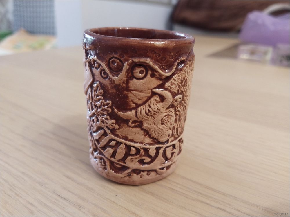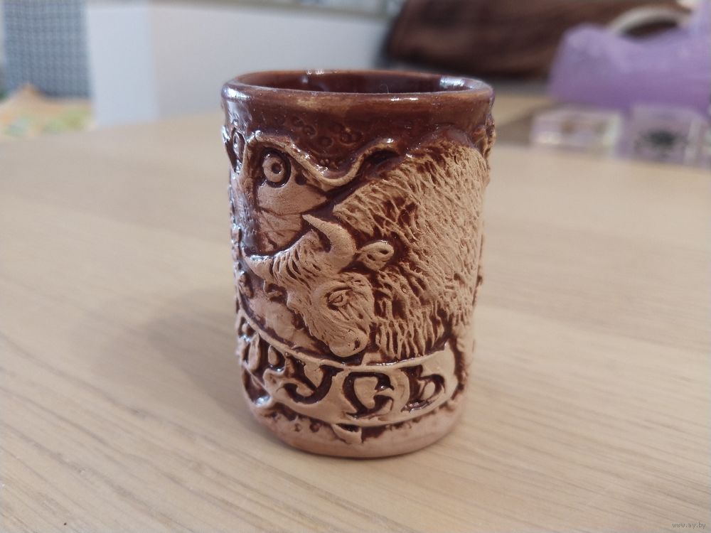 Рюмка из глины с надписью "Беларусь". Ручная работа