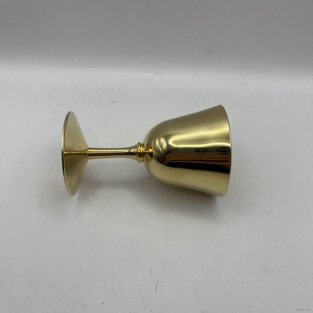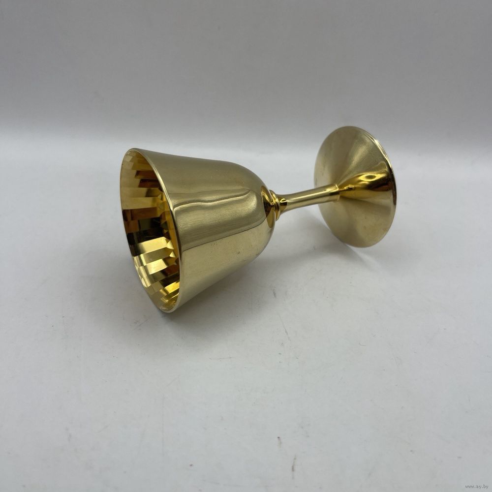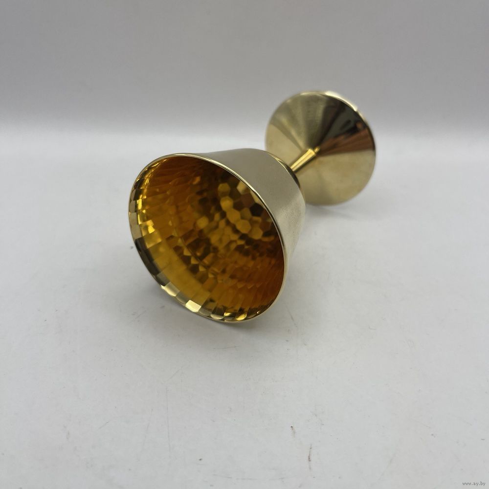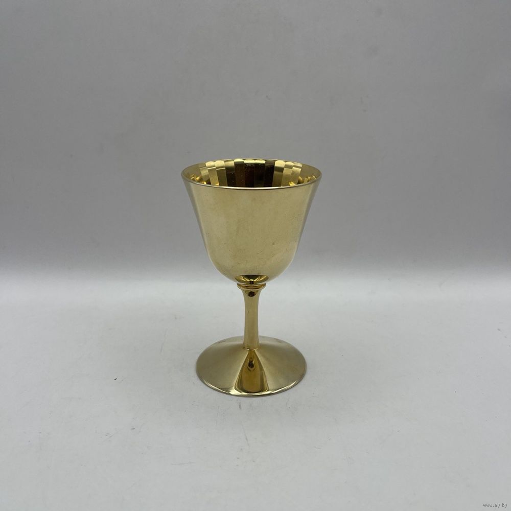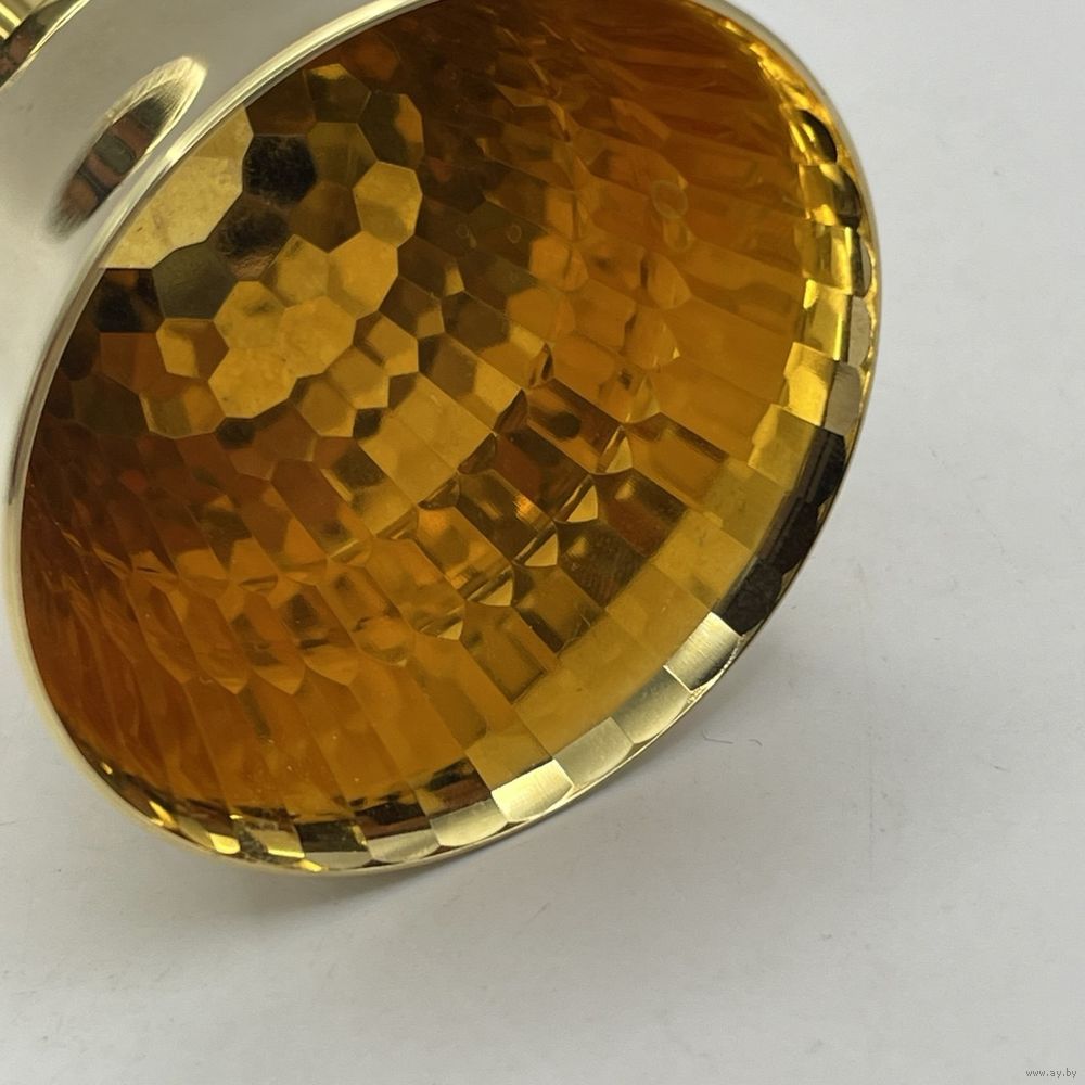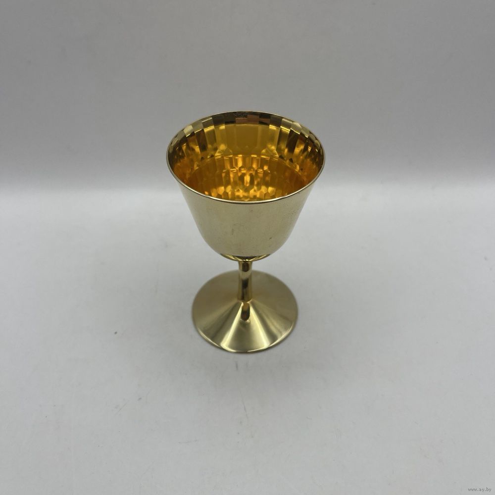 Винтажная рюмка ручной работы с ручным покрытием 24К золотом и рельефными гранями внутри чаши. Франция. Клеймо.1950-е г.г. Высота 8 см, объем 50 мл.