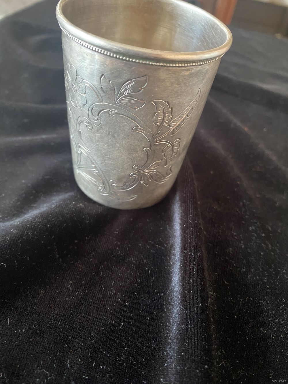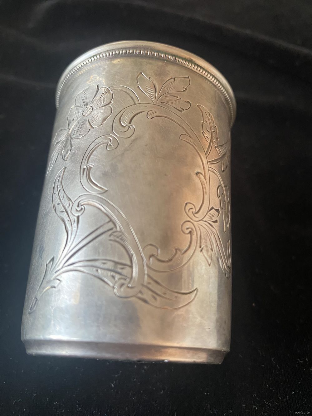 Рюмка,стопка серебро,крупная,красивая работа штихелем,высота-7,5, ширина-5,5, вес 65,86
