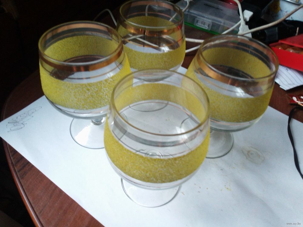 Рюмки с покрытием из стеклянной крошки, желтого цвета. 4 штуки. Цена за все.