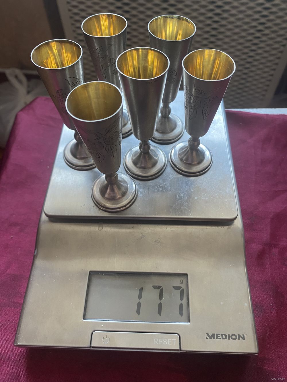 Рюмки СССР серебро проба 875,Киев позолота,высота-8,5см,вес 177гр