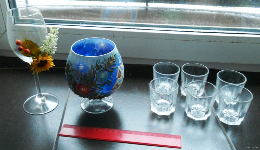 Рюмки 6 шт. , два фужера ручная работа. ЗА ВСЕ