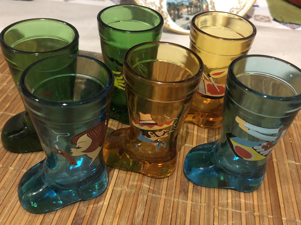 Гламурные рюмочки 50-60 хх гг. из Италии для весёлой компании на 6 персон, попивать ликерчик, ром, глинтвейн и т.д., . Смотрятся очень эффективно и современно. Высота 8 см., а в диаметре 4,5 см. Без каких-л. нюансов, рисунки на всех рюмках в идеале!