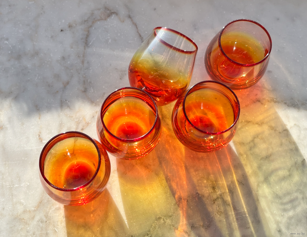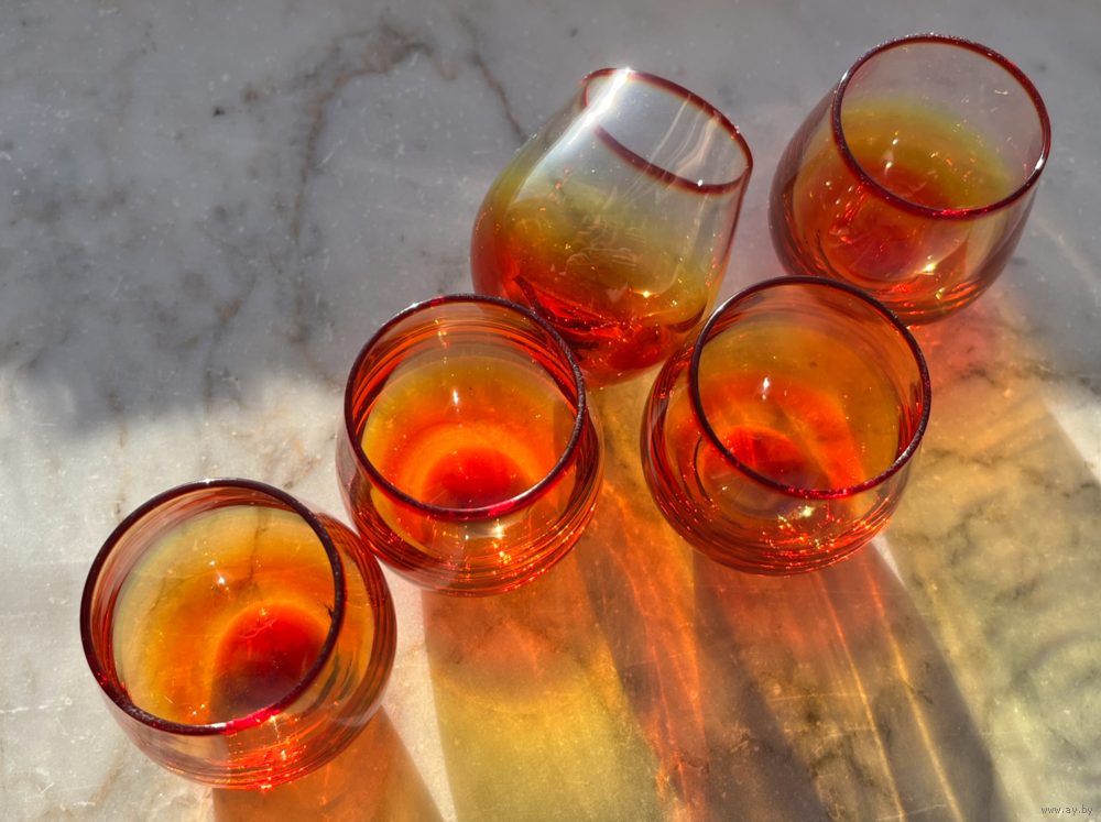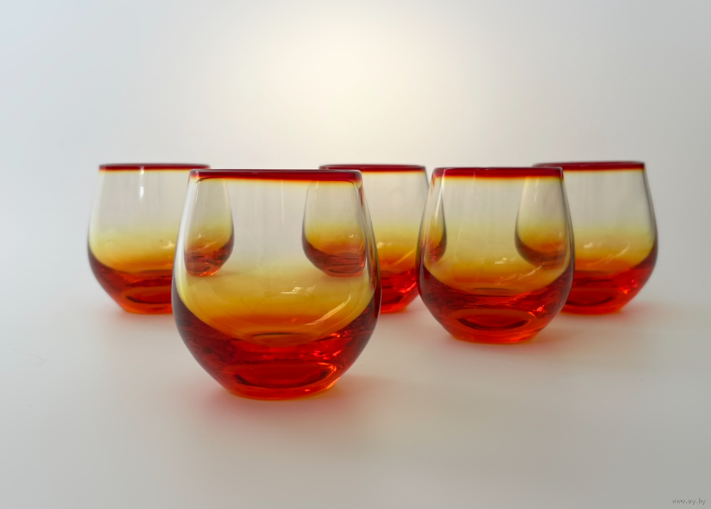 Рюмки крупные селеновое стекло цветное стекло винтаж Чехословакия