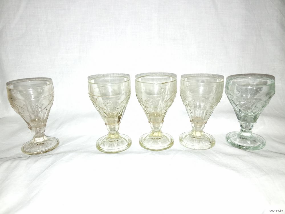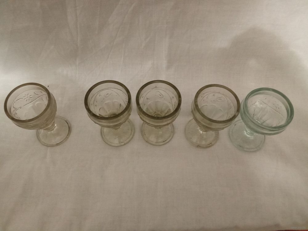 Рюмки лафитники на ножке 5 штук до 1917г. Клеймо LSF ISK, Ливанский стекольный завод, Российская империя. Одна рюмка без клейма – на главном фото слева. Высота колеблется от 8 до 8.6 см. Состояние хорошее. Фото несколько искажено из-за близости снимаемого объекта.