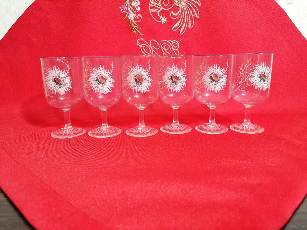 Набор хрустальных раритетных рюмок производства 60-х годов времен СССР. Все изделия в хорошем состоянии. Сколов нет. Количество рюмок шесть. Высота рюмки 8 см, ширина рюмки 3,8 см. Изделия идут без коробки.