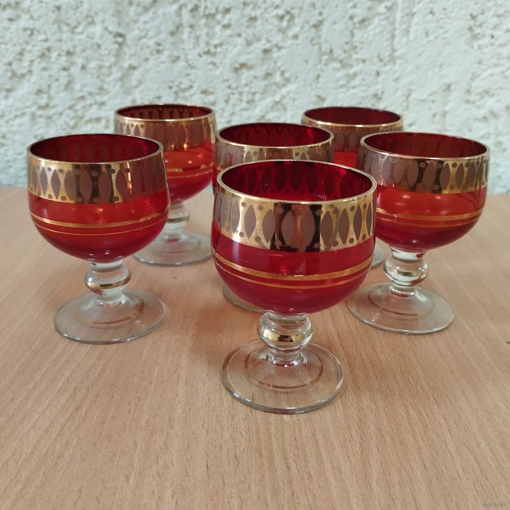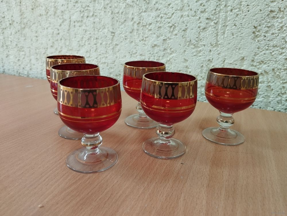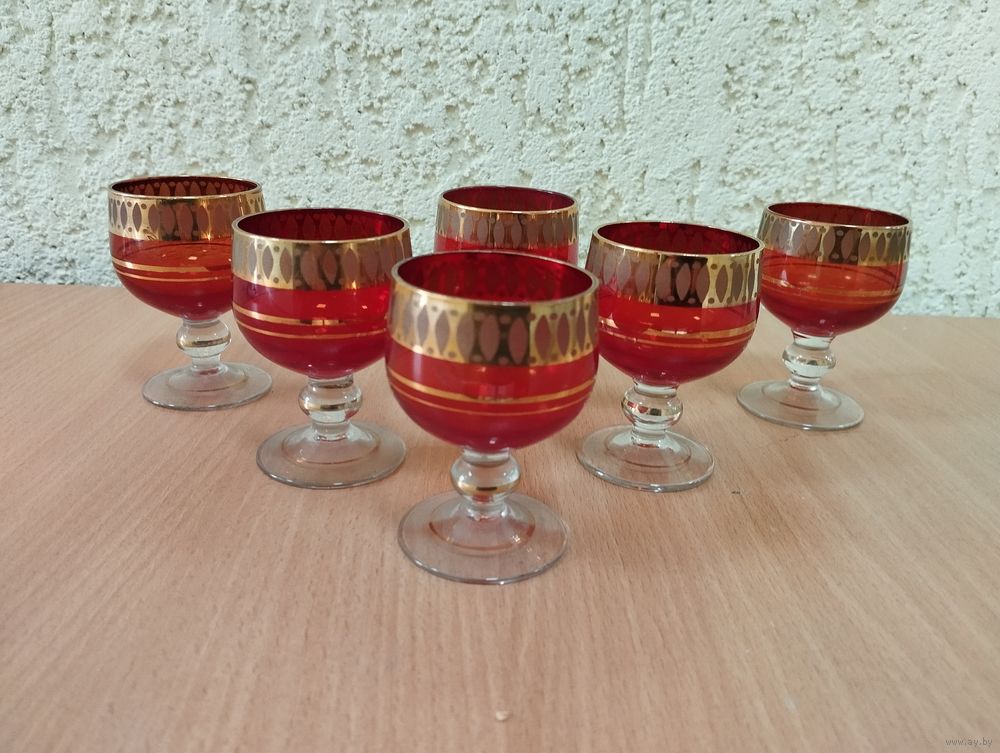 Рюмки (набор 6 штук) Рубин, объём 50 мл. Нёман, БССР