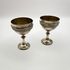 Винтажные рюмки из посеребренного металла в стиле Versace с рельефным римским орнаментом Меандр на чаше, 2 шт. Италия. 1950-е г.г. Объем 25 мл. Высота 6 см. Вес пары 117 г. Естественная патина. Незначительно деформированы по ободкам.