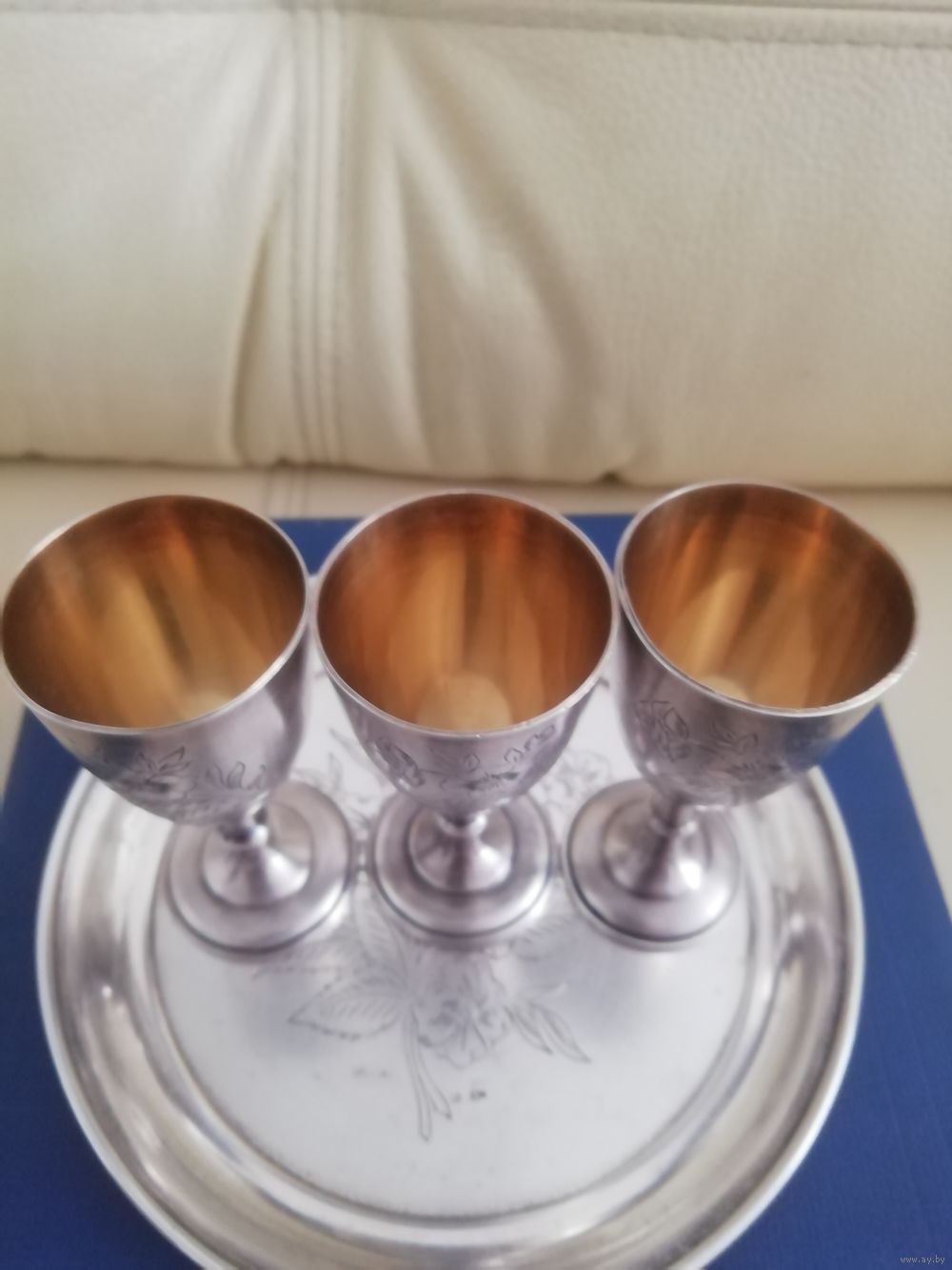 | Рюмки с подносом, в отличном состоянии, на одной рюмочке есть мини вмятина, в остальном всё отлично, но оценивайте самостоятельно по фото | |