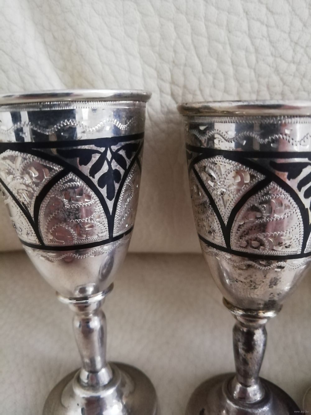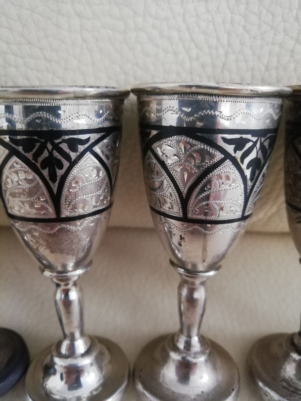 Рюмки серебро 875 пробы, штихельный рисунок, высота 9см, общий вес 268 грамм, рюмки не чищены имеется временная патина, если почистить будут гореть, рюмки в отличном сохране, мало пользованые, рюмки без дефектов, геометрия не нарушена, но во избежание всякого рода недоразумений и спорных вопросов просьба оценивать состояние самостоятельно по фото, фото стараюсь делать достаточно информативными, доп фото по запросу, на все вопросы отвечу до конца аукциона, если вопросов не было, значит всё понятно и всё устроило, смотрите все мои лоты много чего интересного.