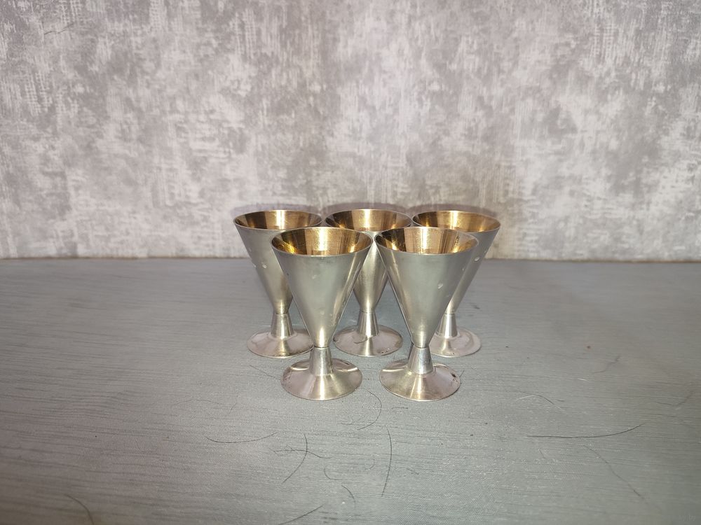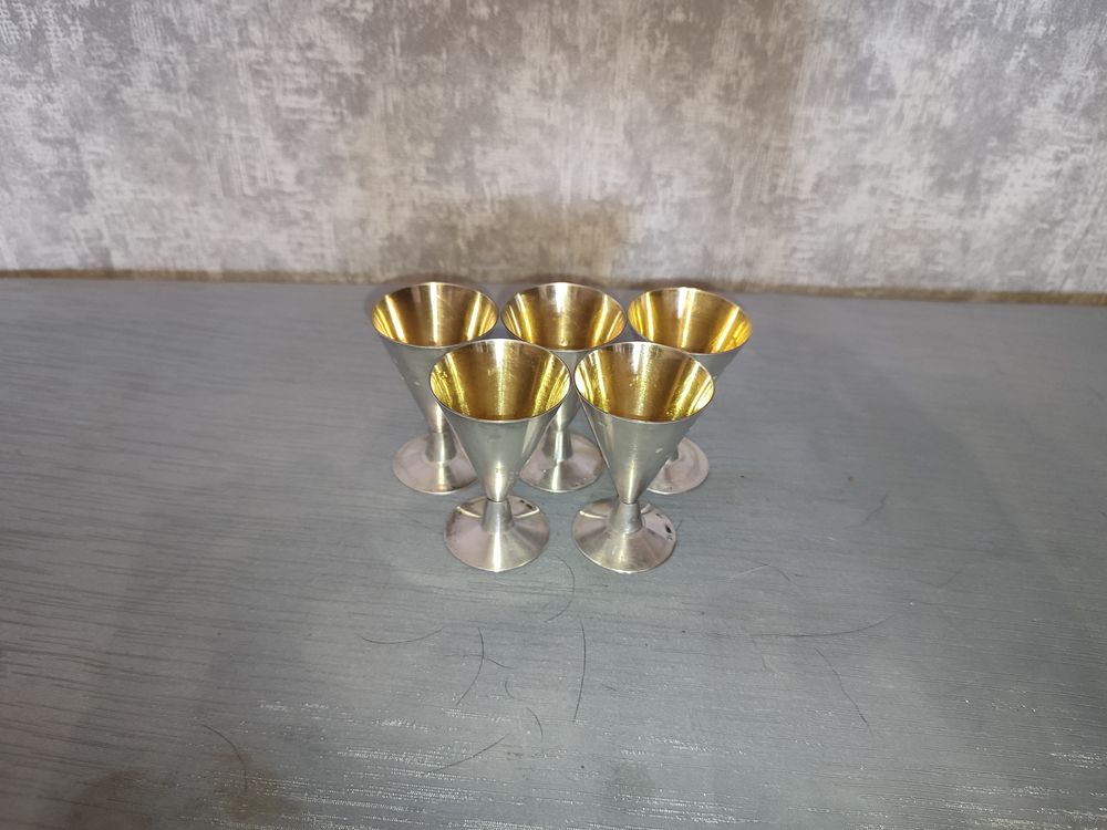 Рюмки 5 штук серебро с золочением