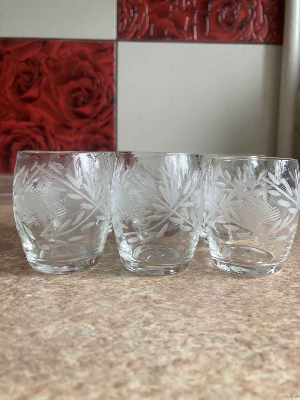 Красивые рюмки, качественное стекло СССР. Резные грани, красивый рисунок, форма "бочонок". Комплект 6 штук. Не использовались, состояние новых. На одной рюмне оооочень маленький скол, практически не заметный. Цена 20 рублей. Вышлю любой почтой.
