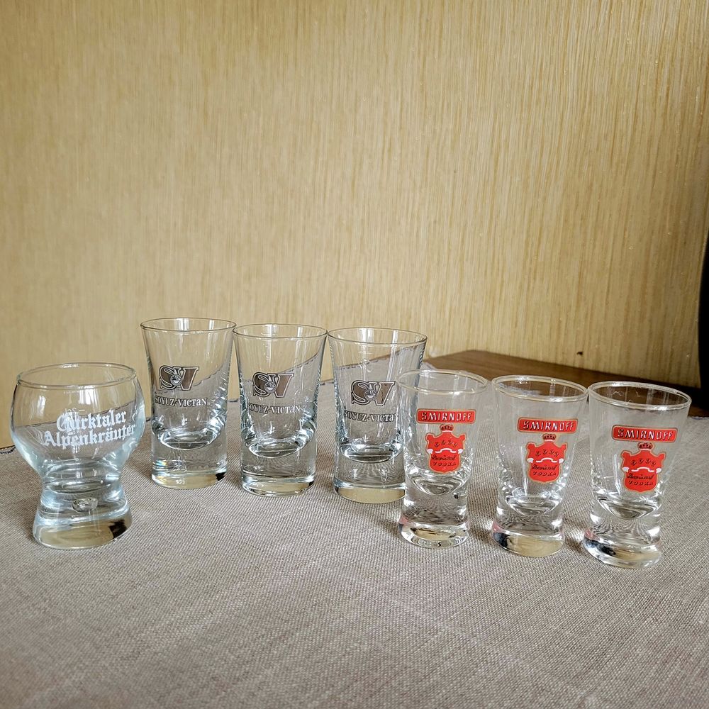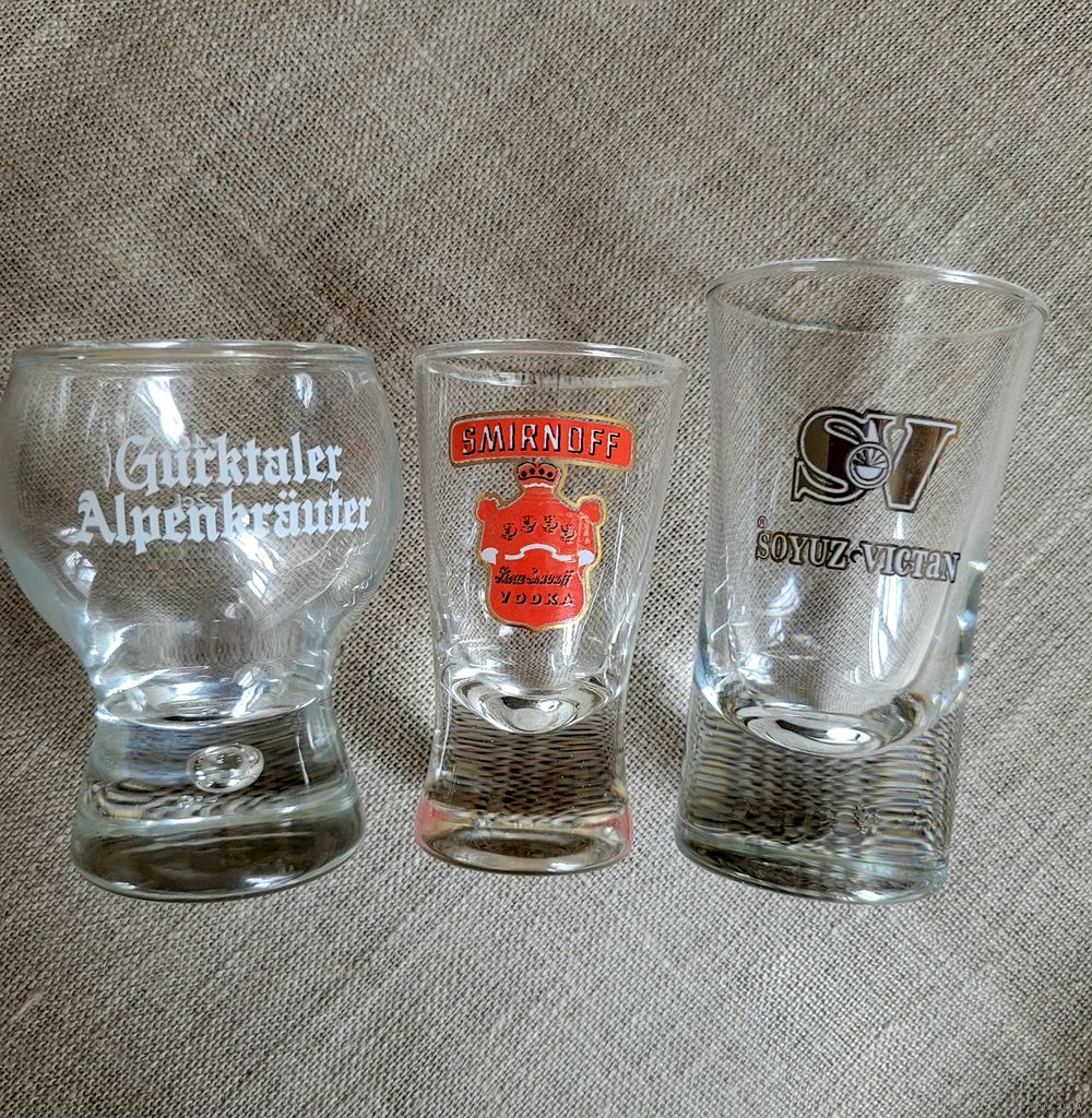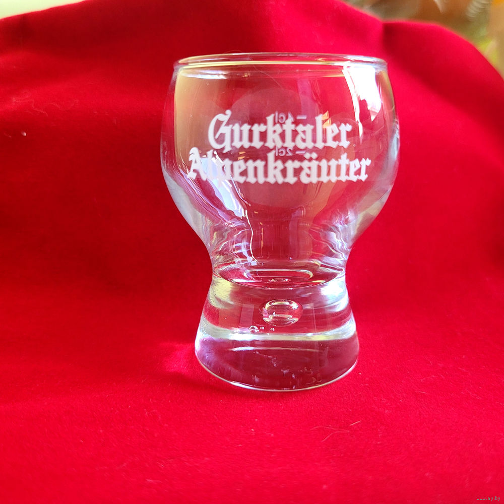 1. Рюмка ликерная австрийского бренда Gurktaler Alpenkräuter. Стекло, утолщённое дно с пузырьком в стекольной массе (это фишка брэнда). Размер 6,5×4 см - 1 шт.