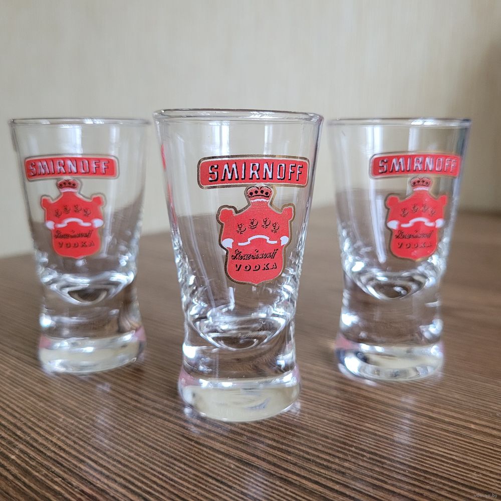 2. Стопка (шот) брендированная Smirnoff 25 мл. Размер 6,5 × 3,5 см. Утолщённое дно - 3 шт.