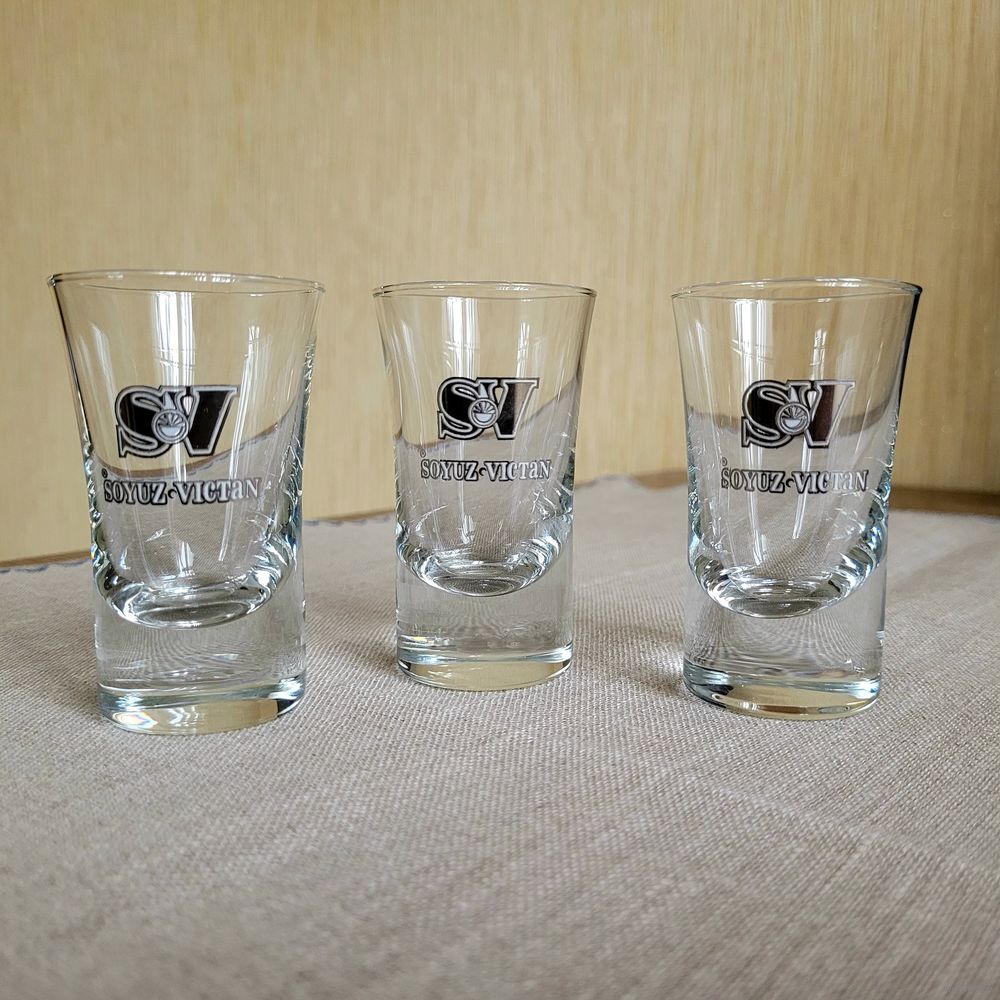3. Стопка/рюмка брендированная SV SOYUZ-VICTAN (Союз-Виктан) 50 мл. Стекло, утолщённое дно. Размер 7,5×4,5 см - 3 шт.