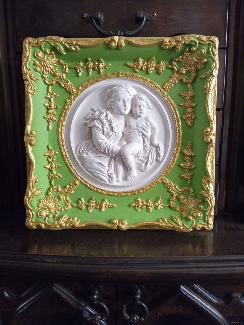 + 2 подарка купившему за красную цену лот лепные 1) Картина-Барельеф Мадонна с младенцем 30х30х4 см 2) Барельеф-Плакетка Жозефина 29х22х6 см
