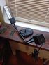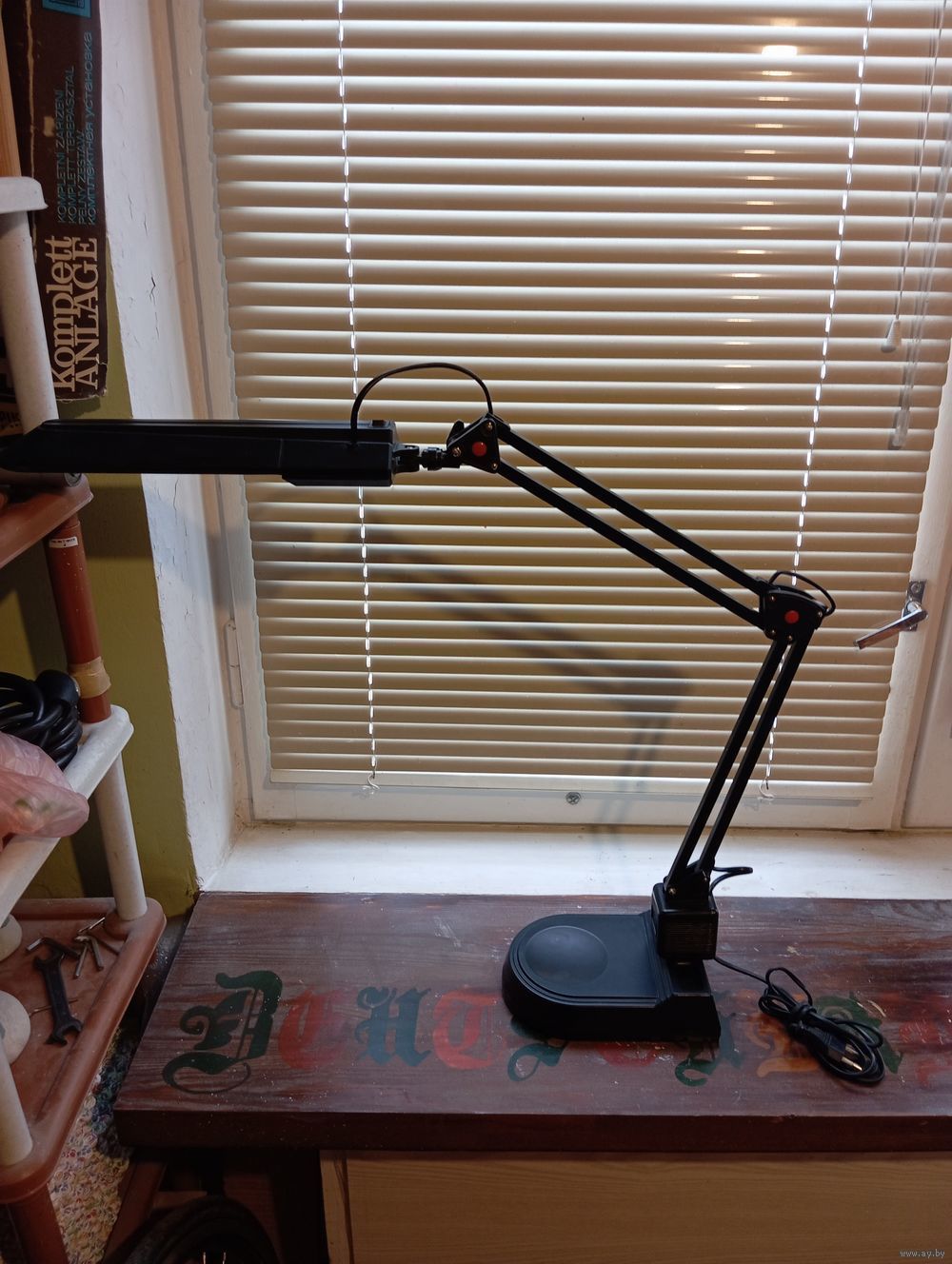 Лампа чёрная метало-пластик дневного света , рабочая . Шпилька отломалась сразу у новой , зажим забыл ослабить при наклоне и нажал сильно .Всё Белпочтой или самовывоз