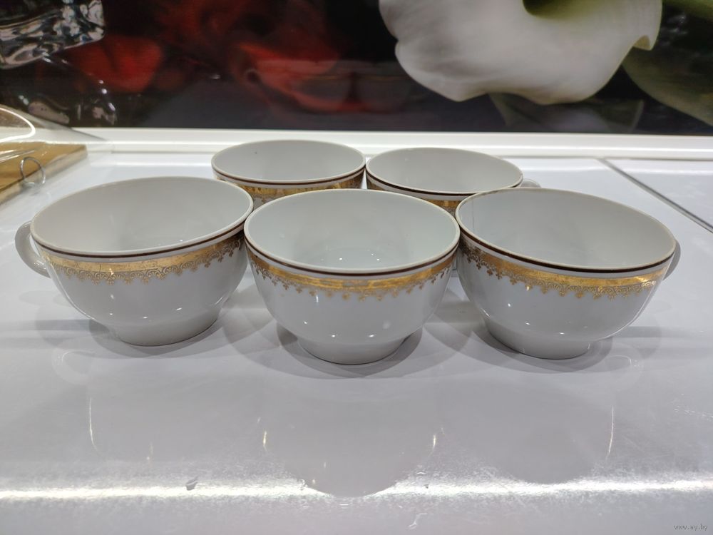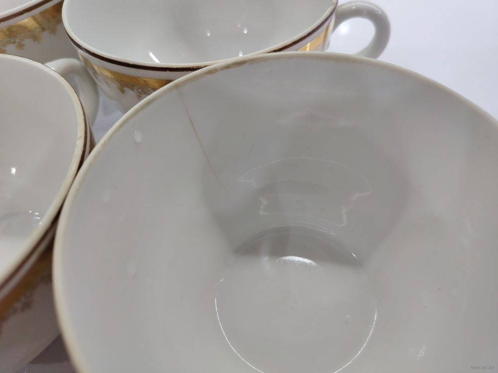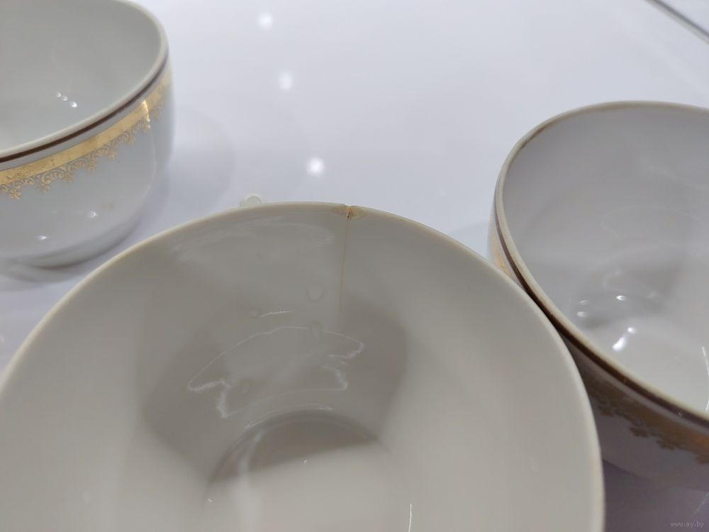 С 1 рубля!!! Чайные кружки СССР с позолотой. 2 чашки с трещиной.