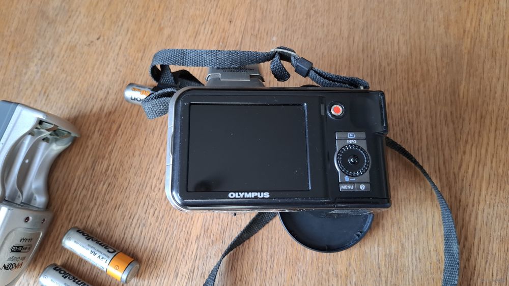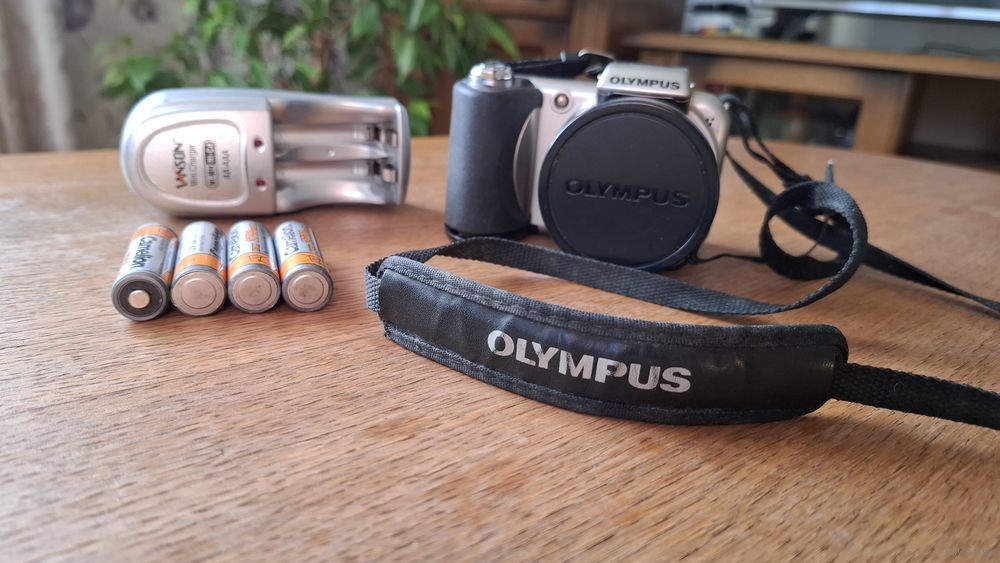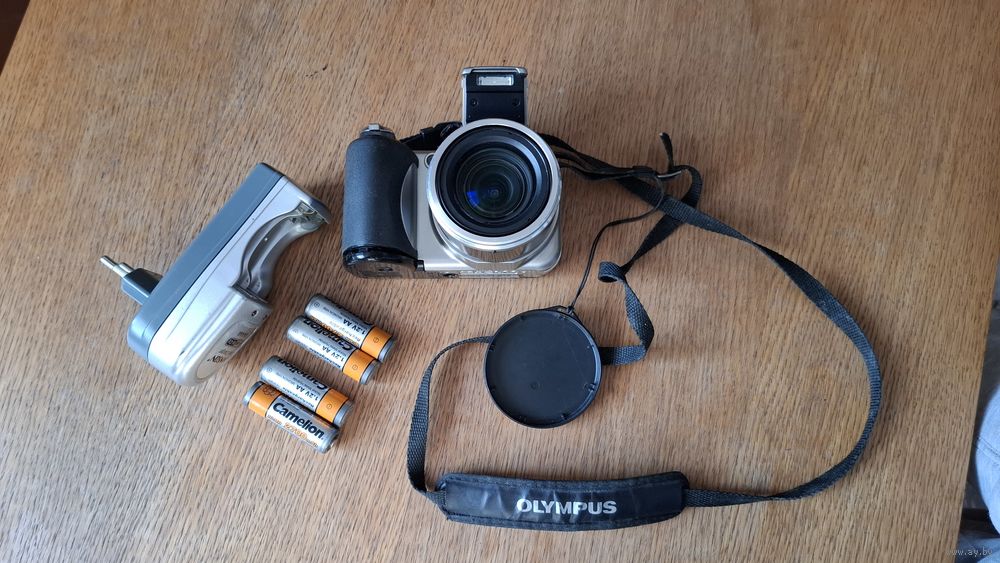 С 1 рубля! Фотоаппарат ОLYMPUS SP - 600 UZ. Исправен. Комплект. Без флешки, только адаптер. Крышка в отсек батареек держит, но один зацеп сломан. Все на фото!