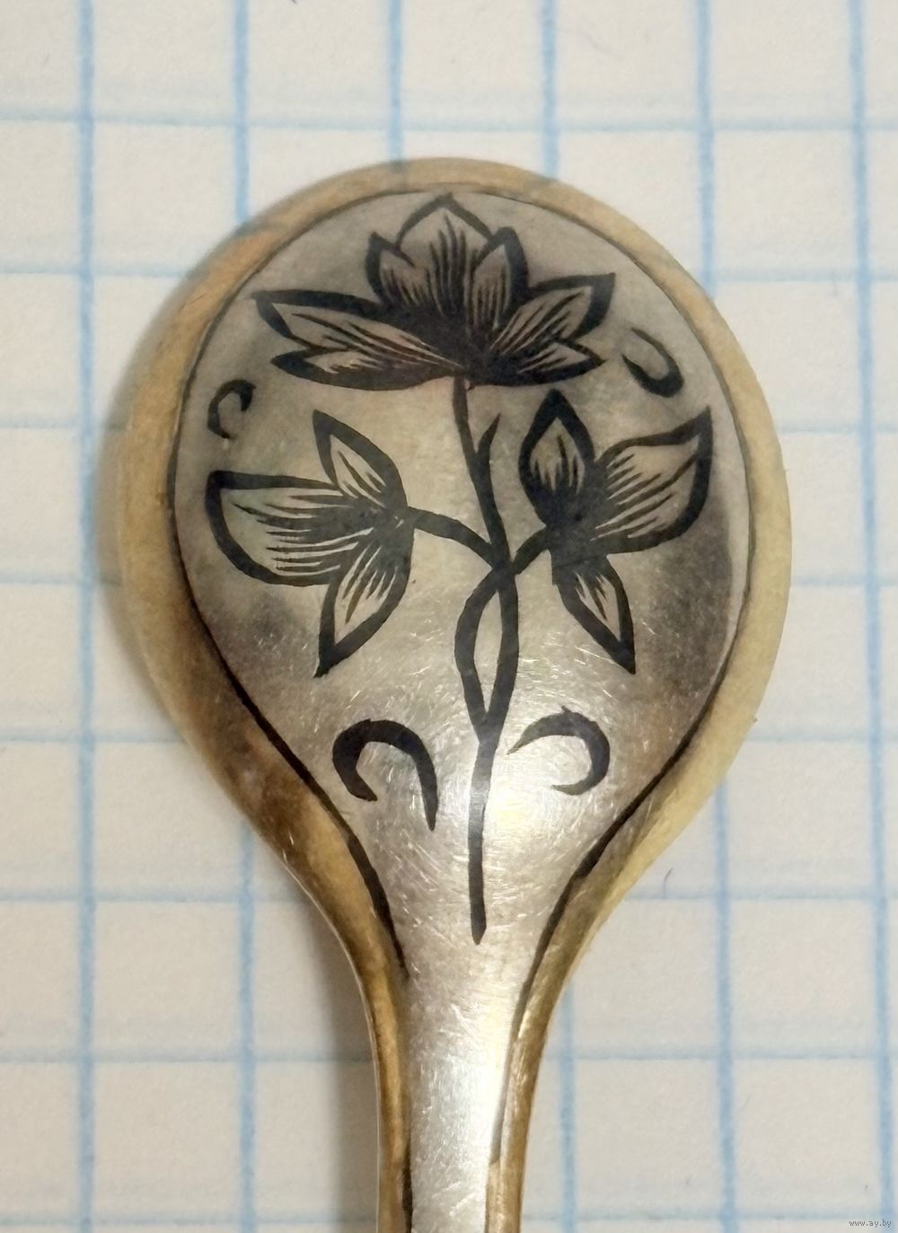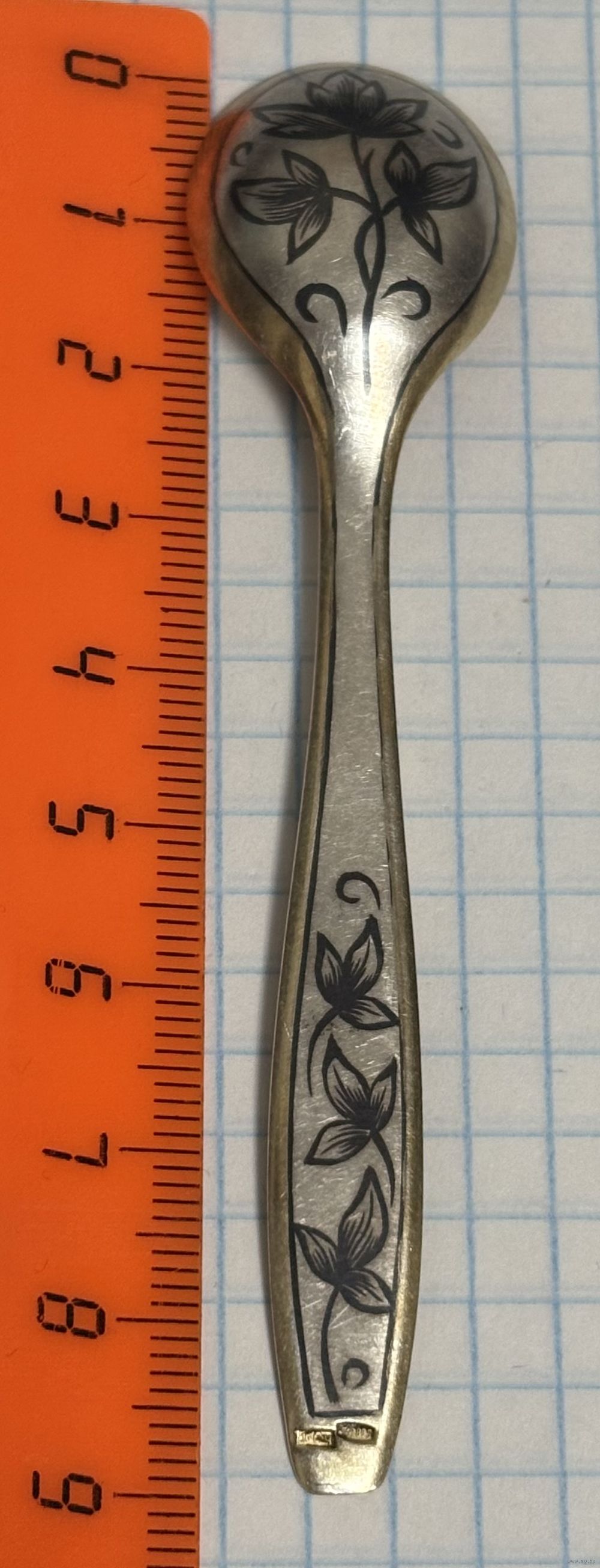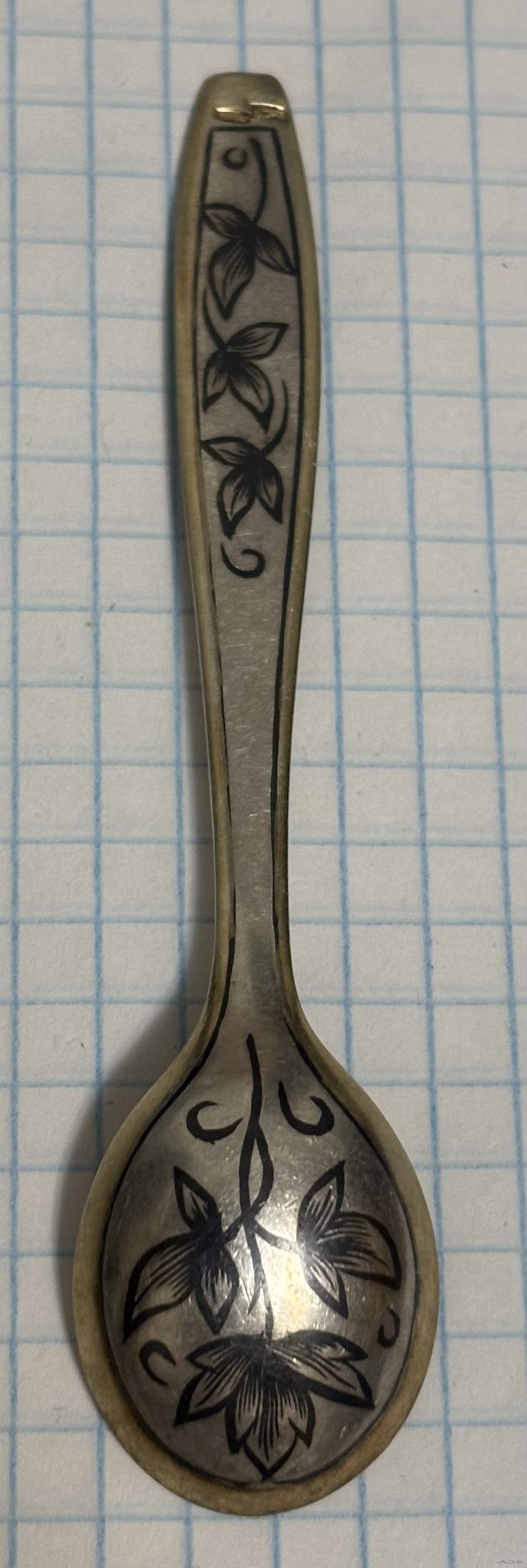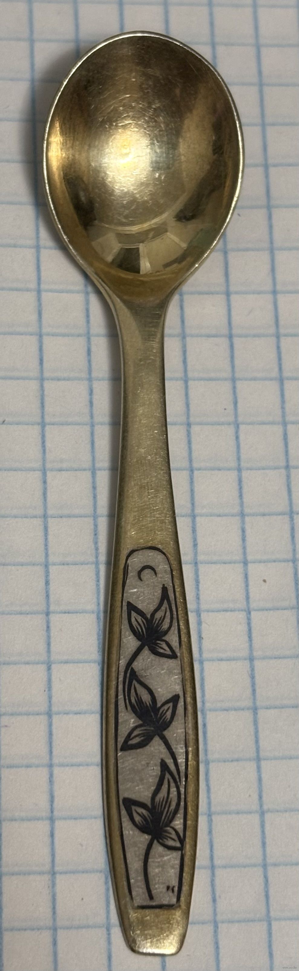 С 1 РУБЛЯ! КОФЕЙНАЯ ЛОЖКА СЕРЕБРО 875 ПРОБА ПОЗОЛОТА ЧЕРНЬ