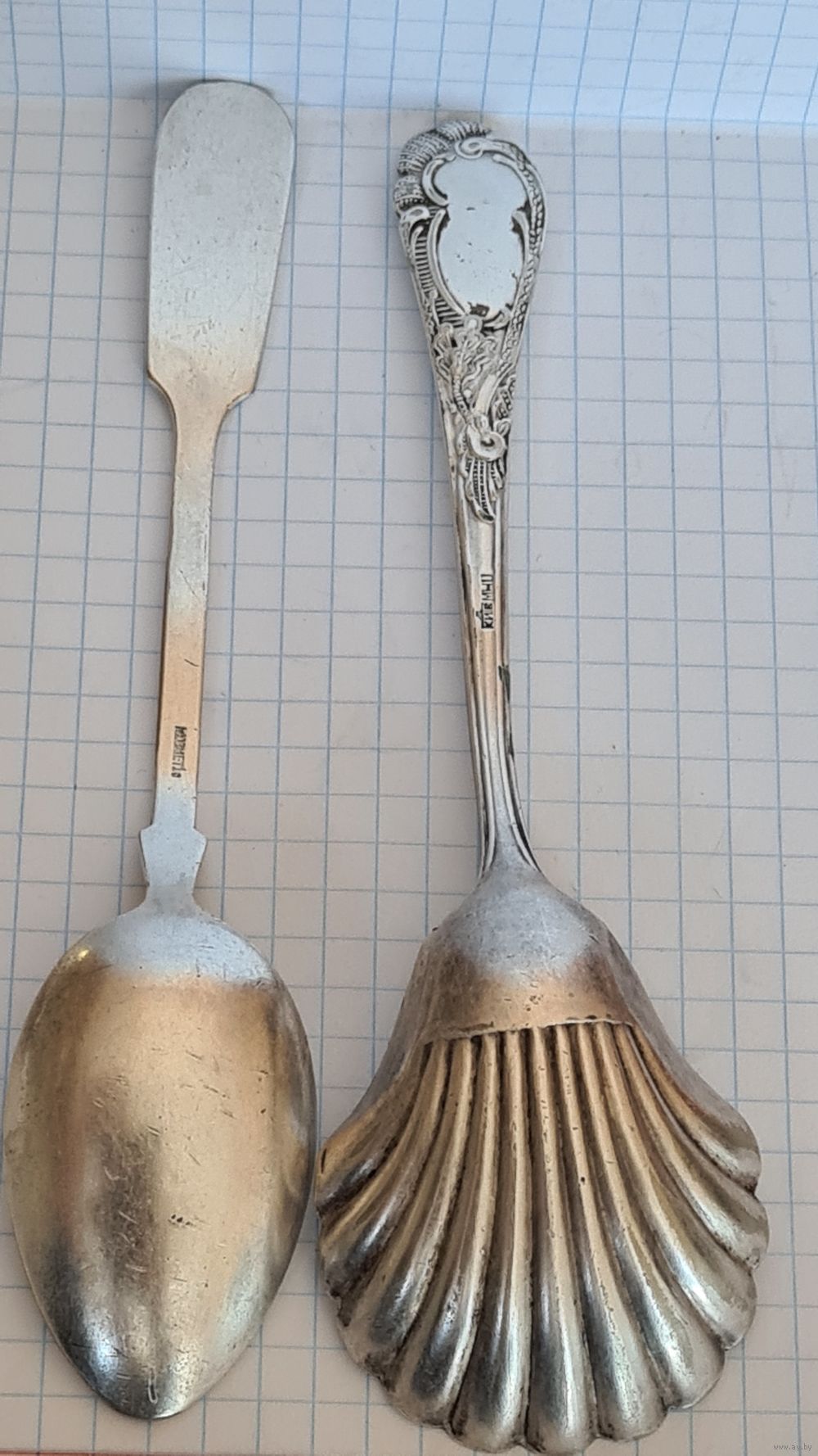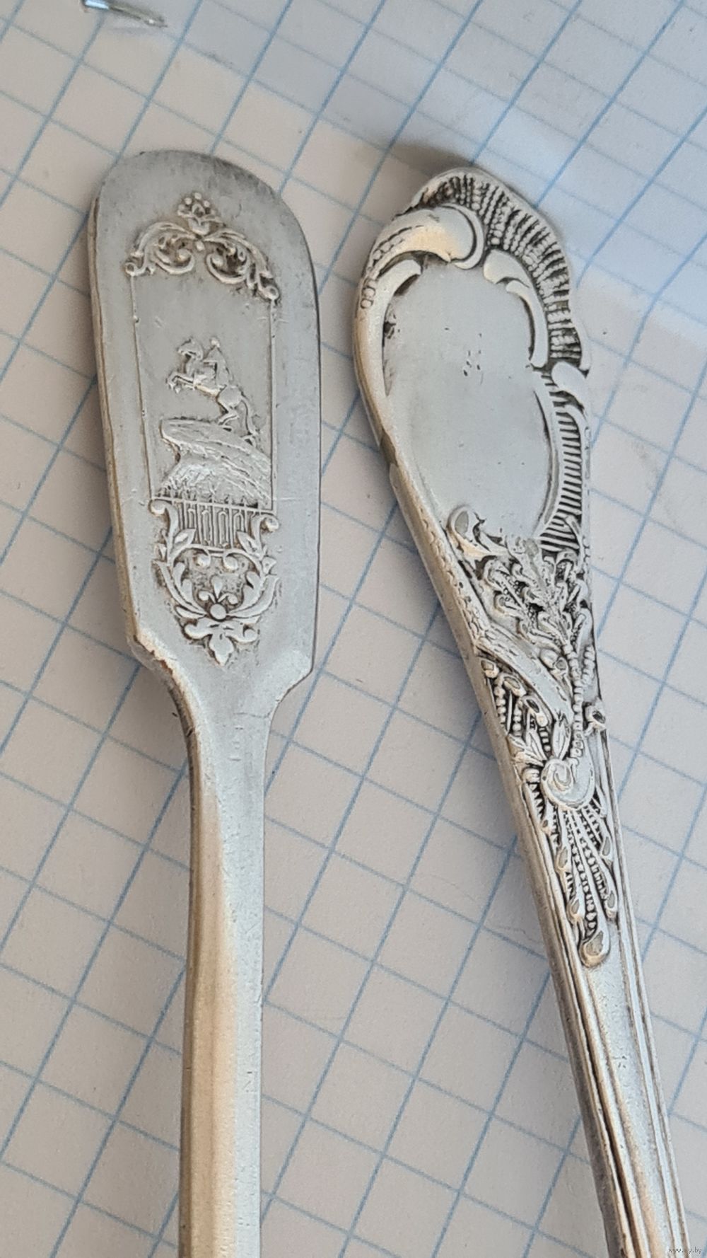 Набор 2 Ложки чайная и для сахара ПОСЕРЕБРЕНИЕ ПАМЯТНИК ИМПЕРАТОРУ ПЕТРУ l , МЕДНЫЙ ВСАДНИК .