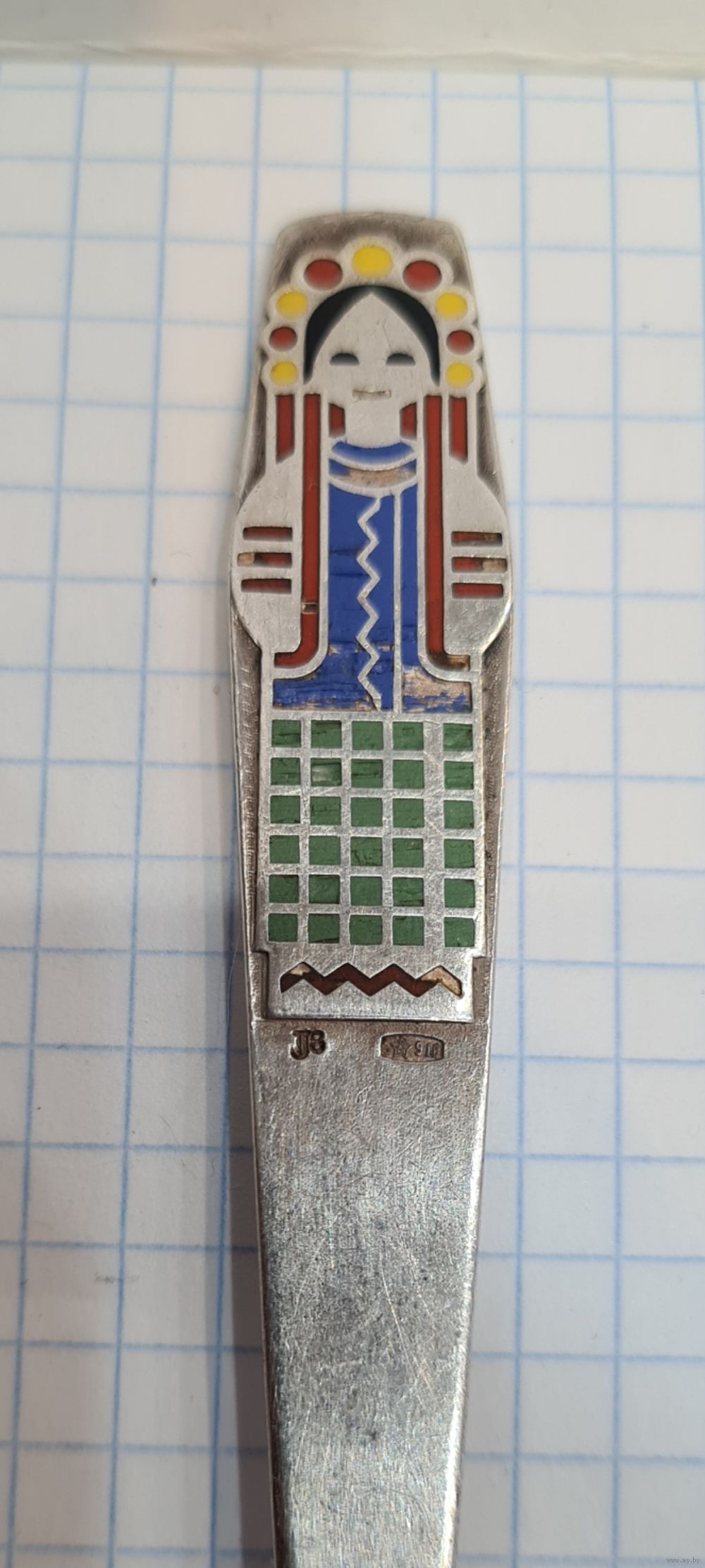 Ложка СССР серебро 915 проба ВЕС 31,2 ГРАММА эмаль .