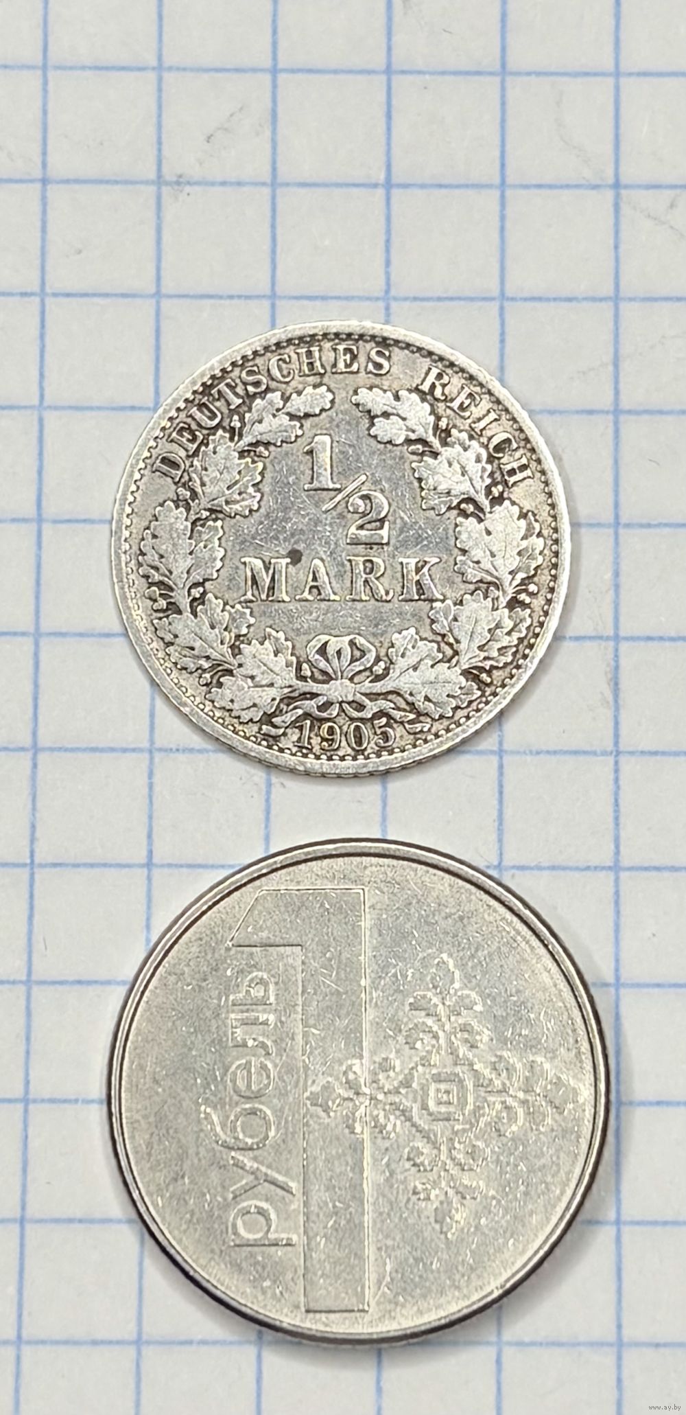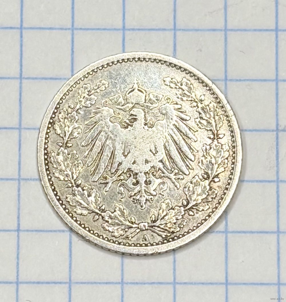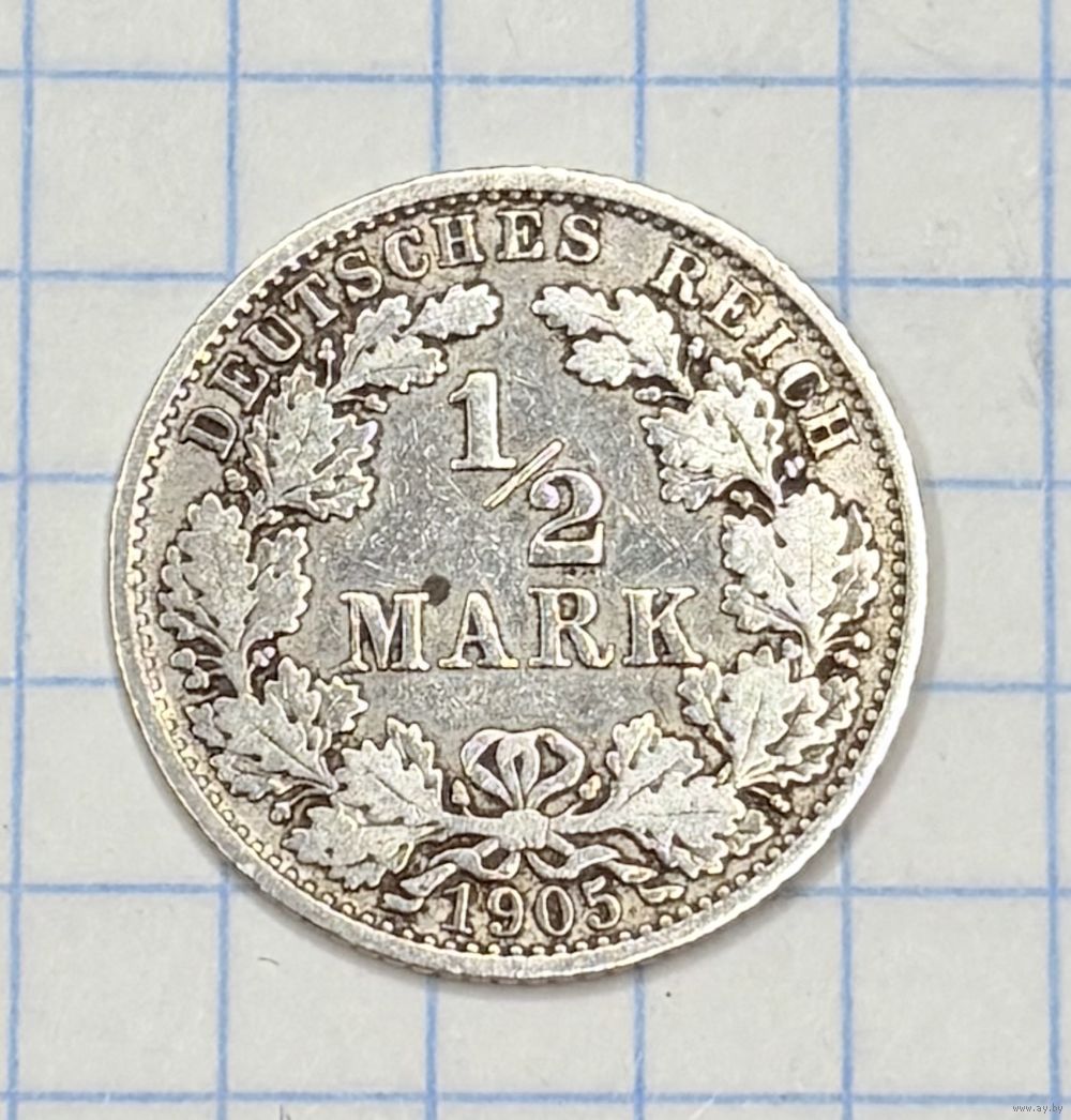 С 1 РУБЛЯ! МОНЕТА 1/2 МАРКИ ГЕРМАНСКАЯ ИМПЕРИЯ 1905 СЕРЕБРО