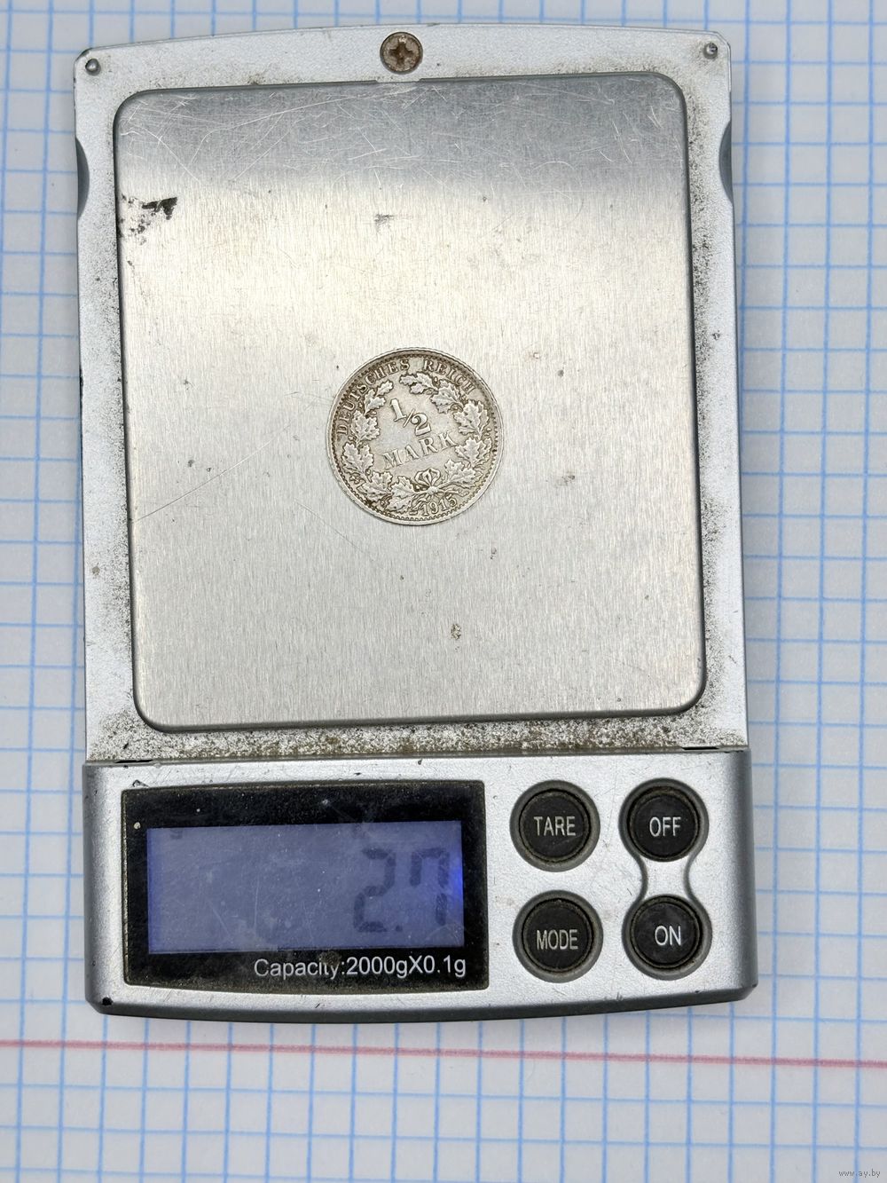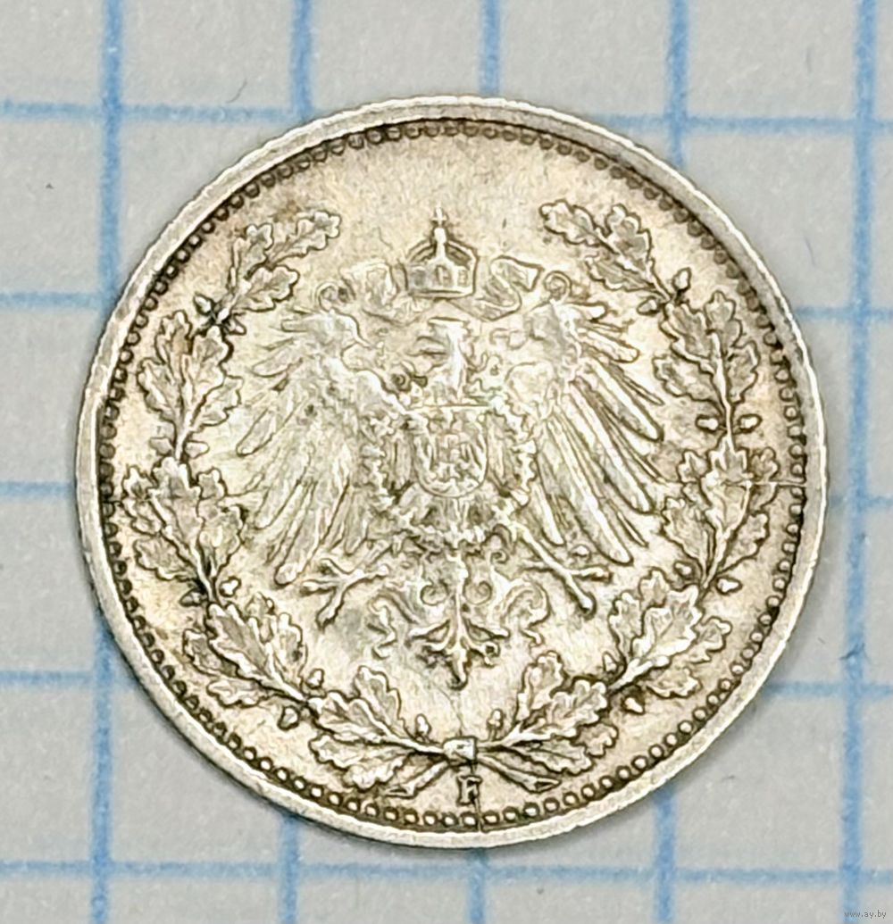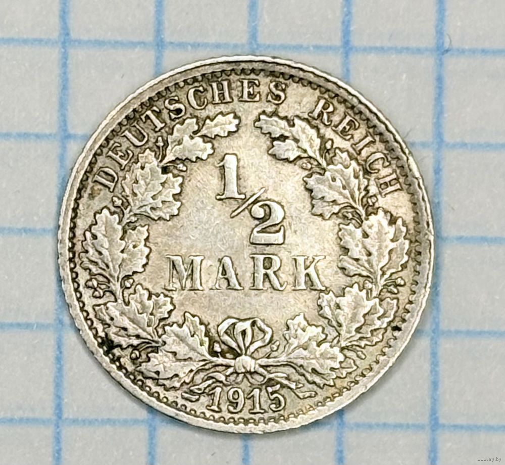 С 1 РУБЛЯ! МОНЕТА 1/2 МАРКИ СЕРЕБРО 1915 ГОДА
