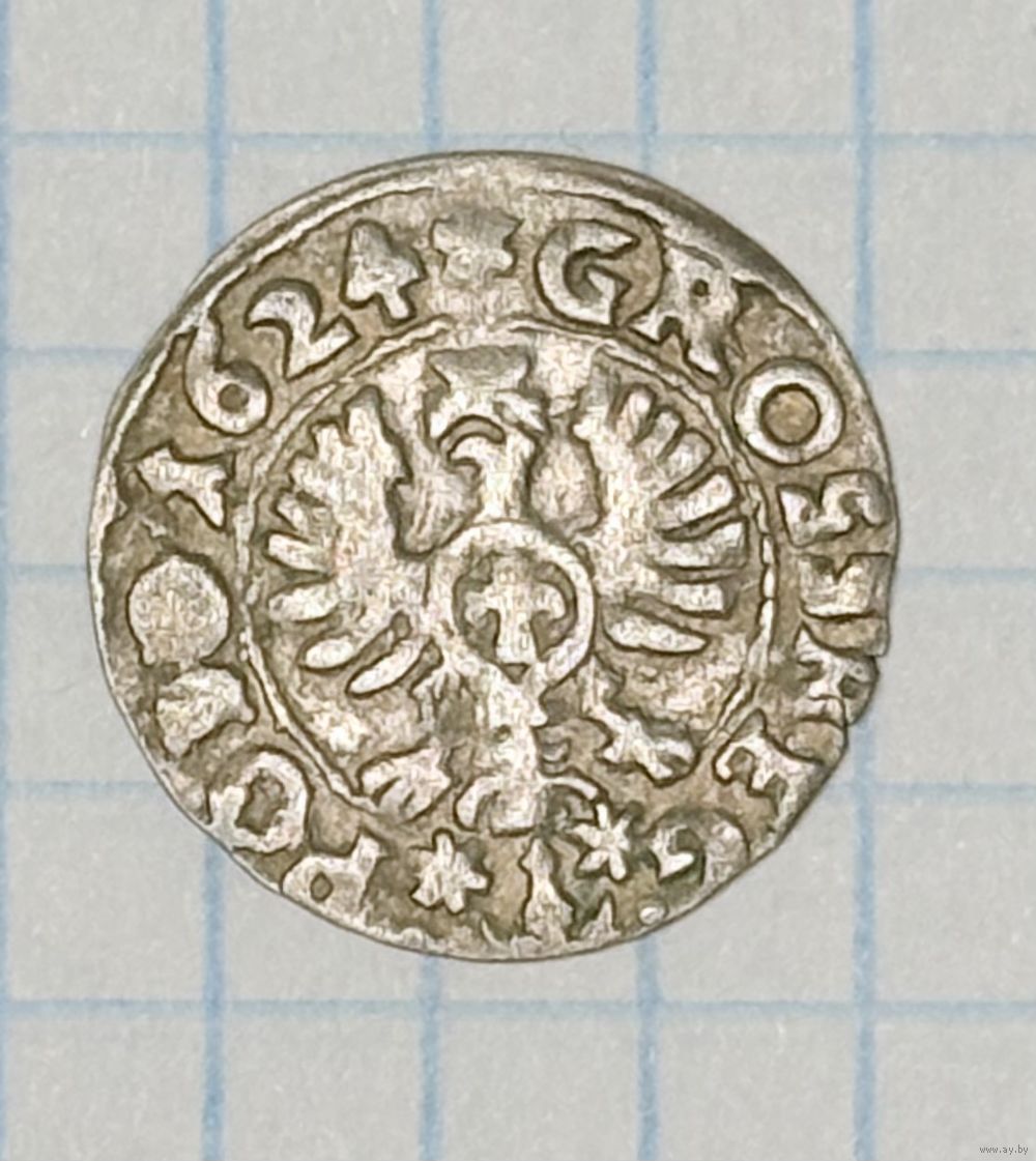 С 1 РУБЛЯ! МОНЕТА 1 ГРОШ 1624 СИГИЗМУНД III СЕРЕБРО ПОЛЬША