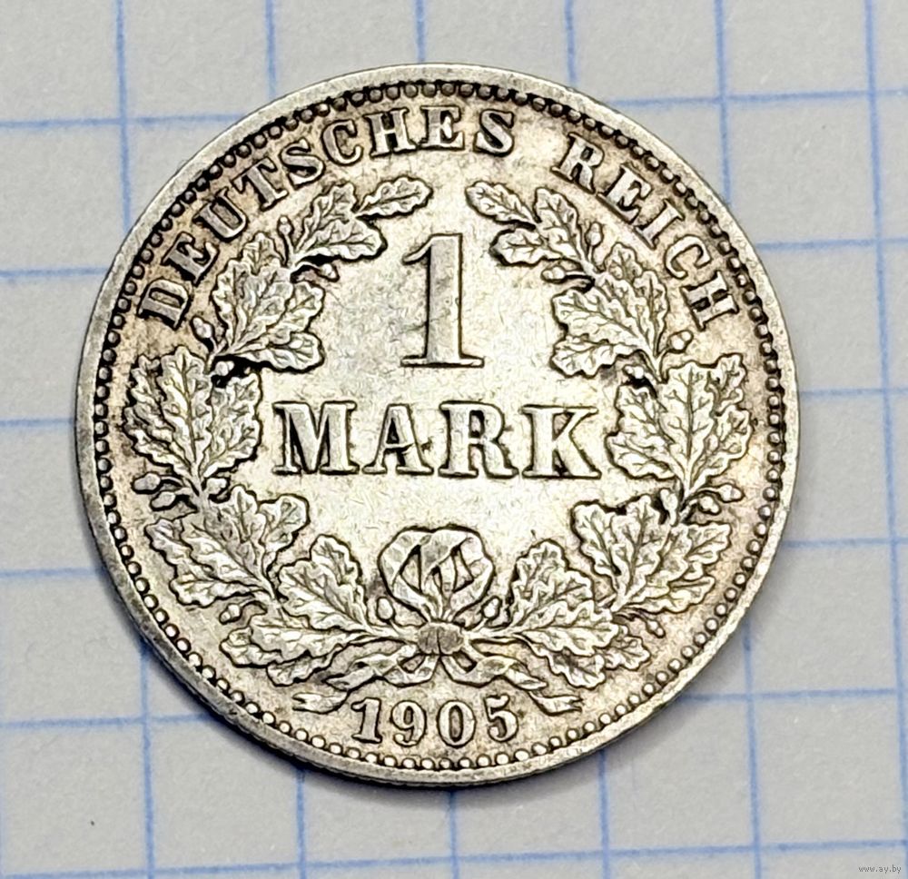 С 1 РУБЛЯ! МОНЕТА 1 МАРКА 1905 ГОДА СЕРЕБРО ГЕРМАНСКАЯ ИМПЕРИЯ