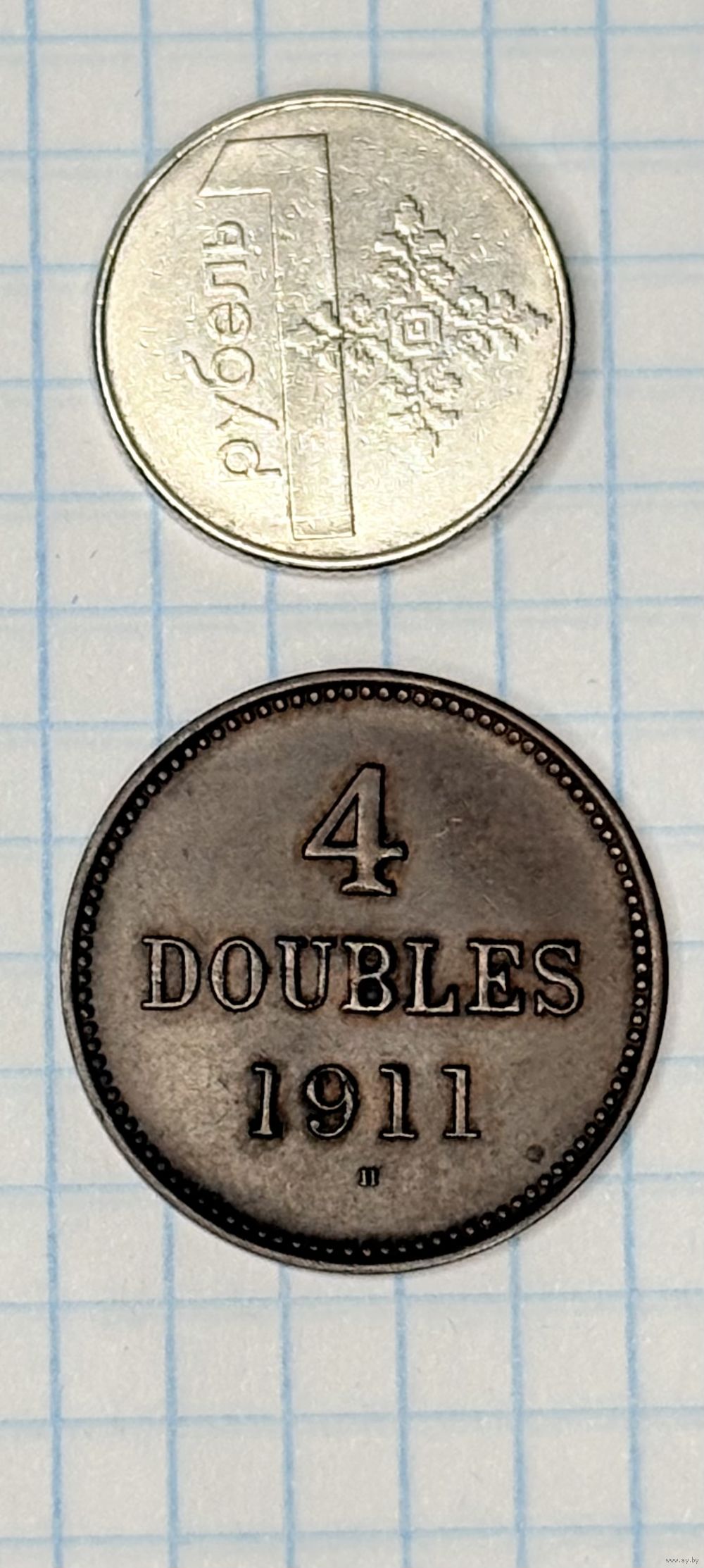 С 1 РУБЛЯ! МОНЕТА 4 ДУБЛЯ 1911 ГЕРНСИ