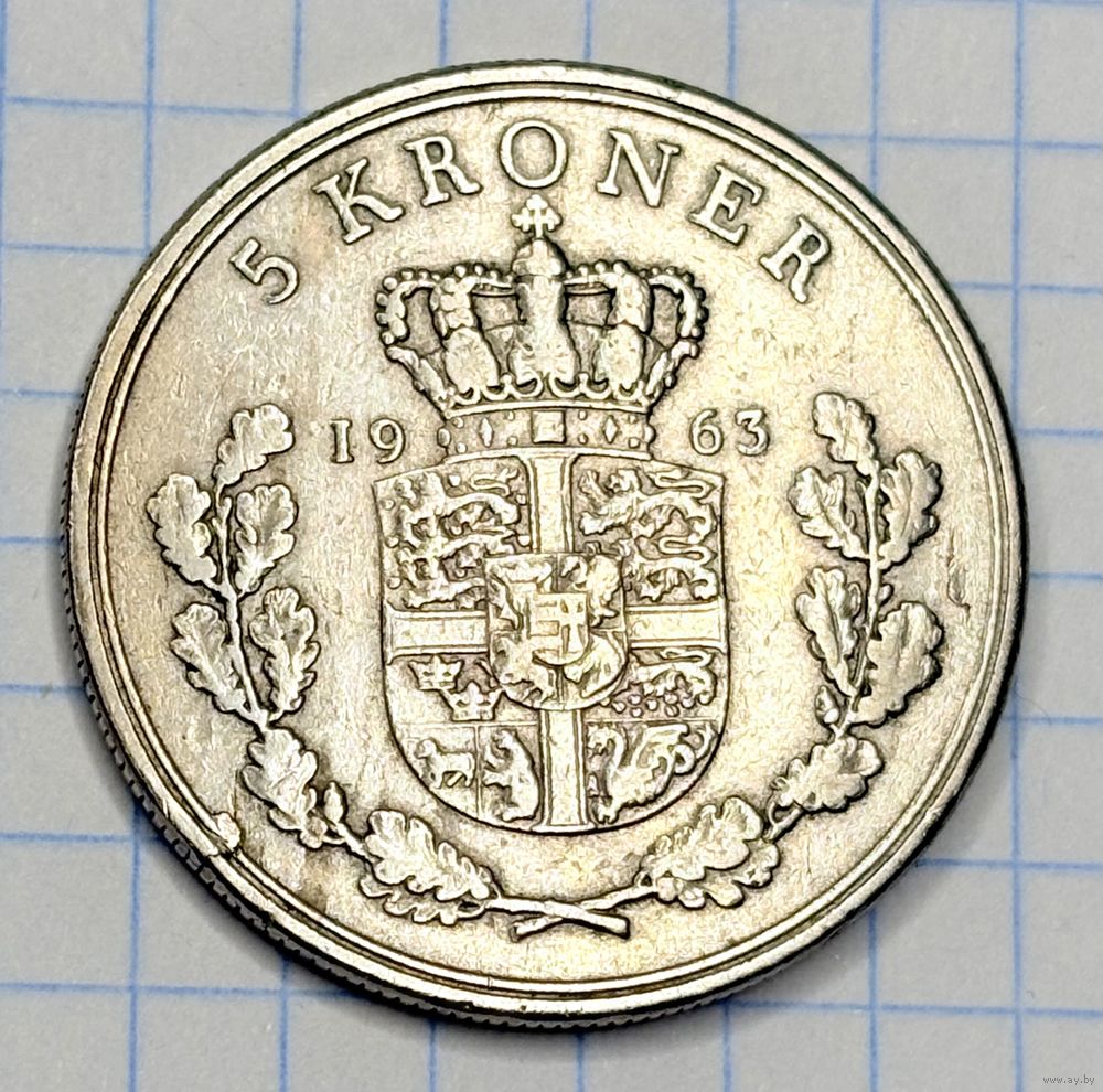 С 1 РУБЛЯ! МОНЕТА 5 КРОН ДАНИЯ 1963