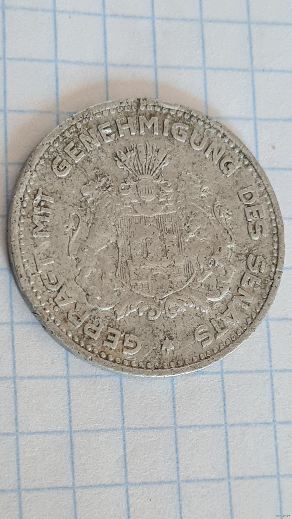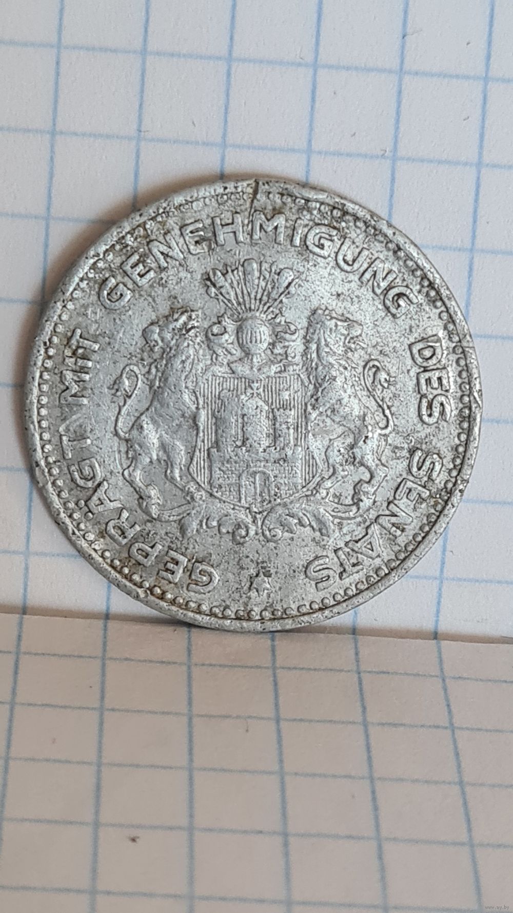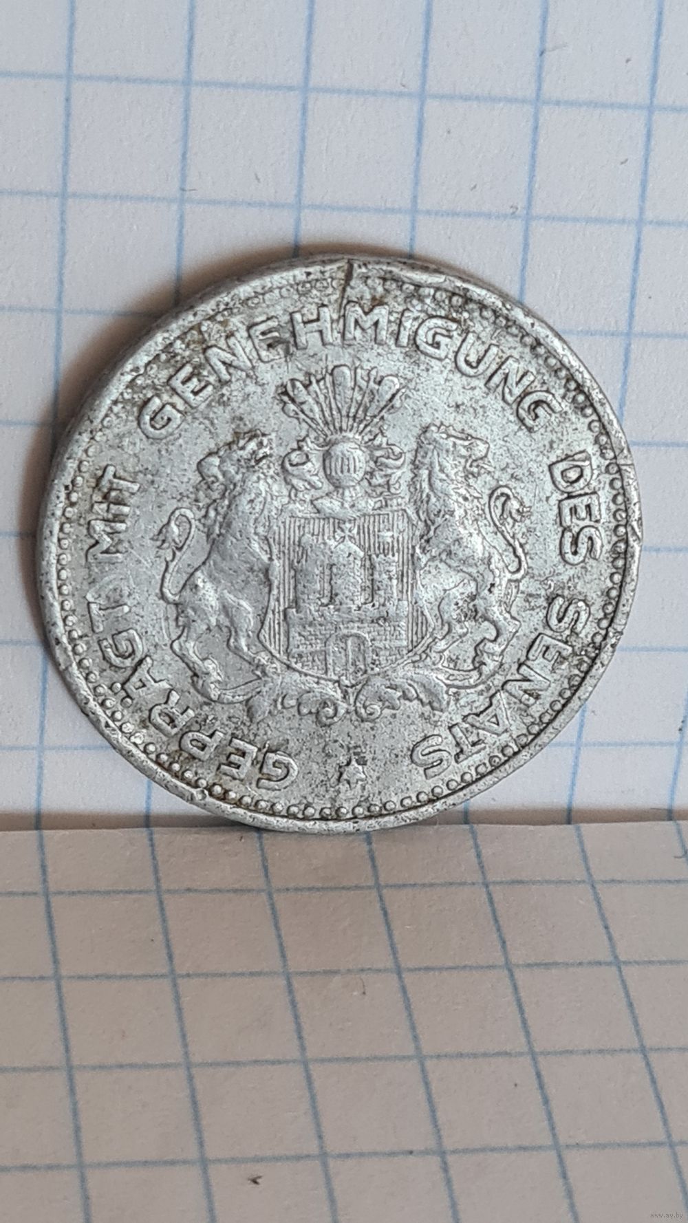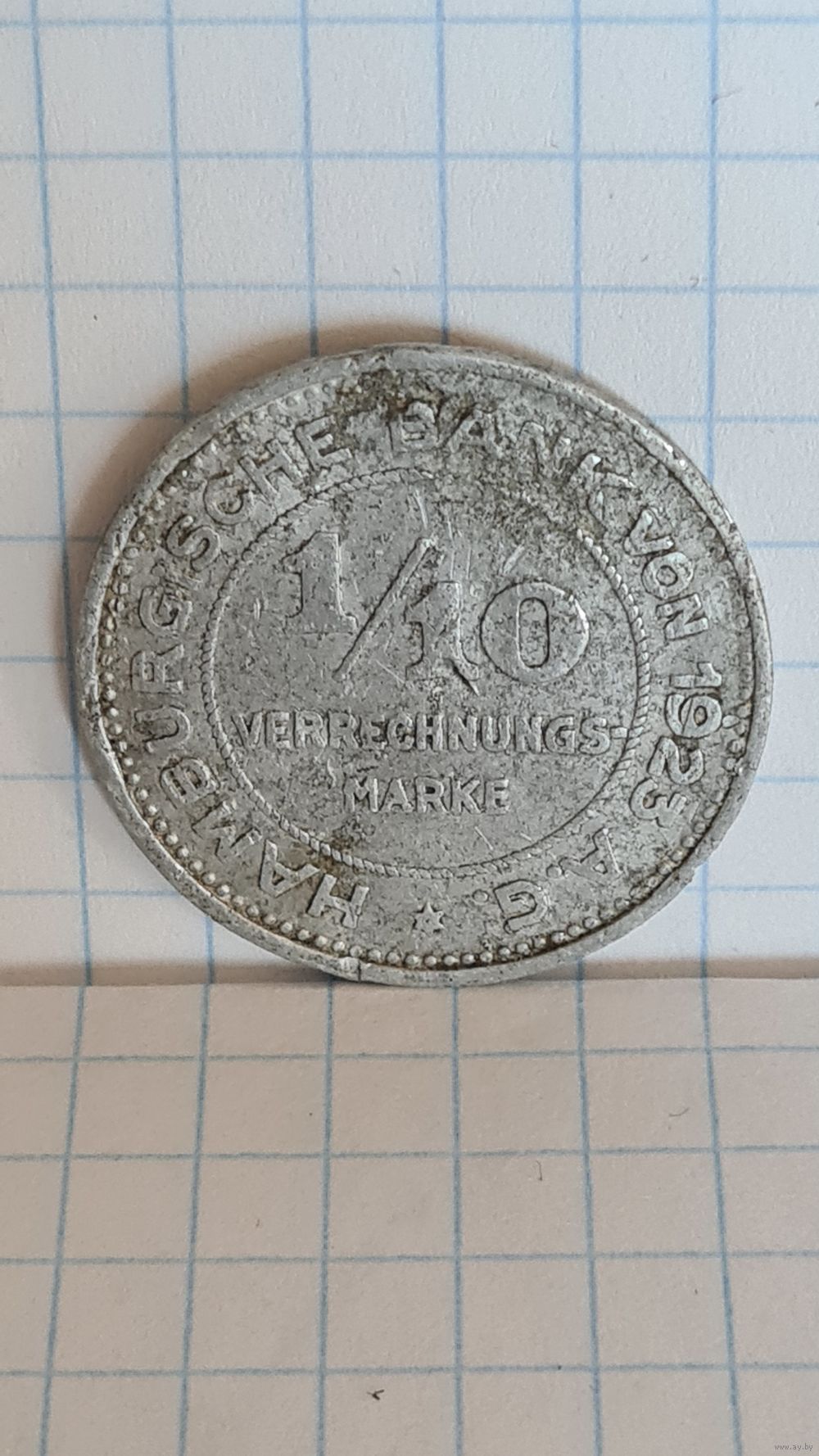 1/10 марка город ГАМБУРГ Германия 1923 год .