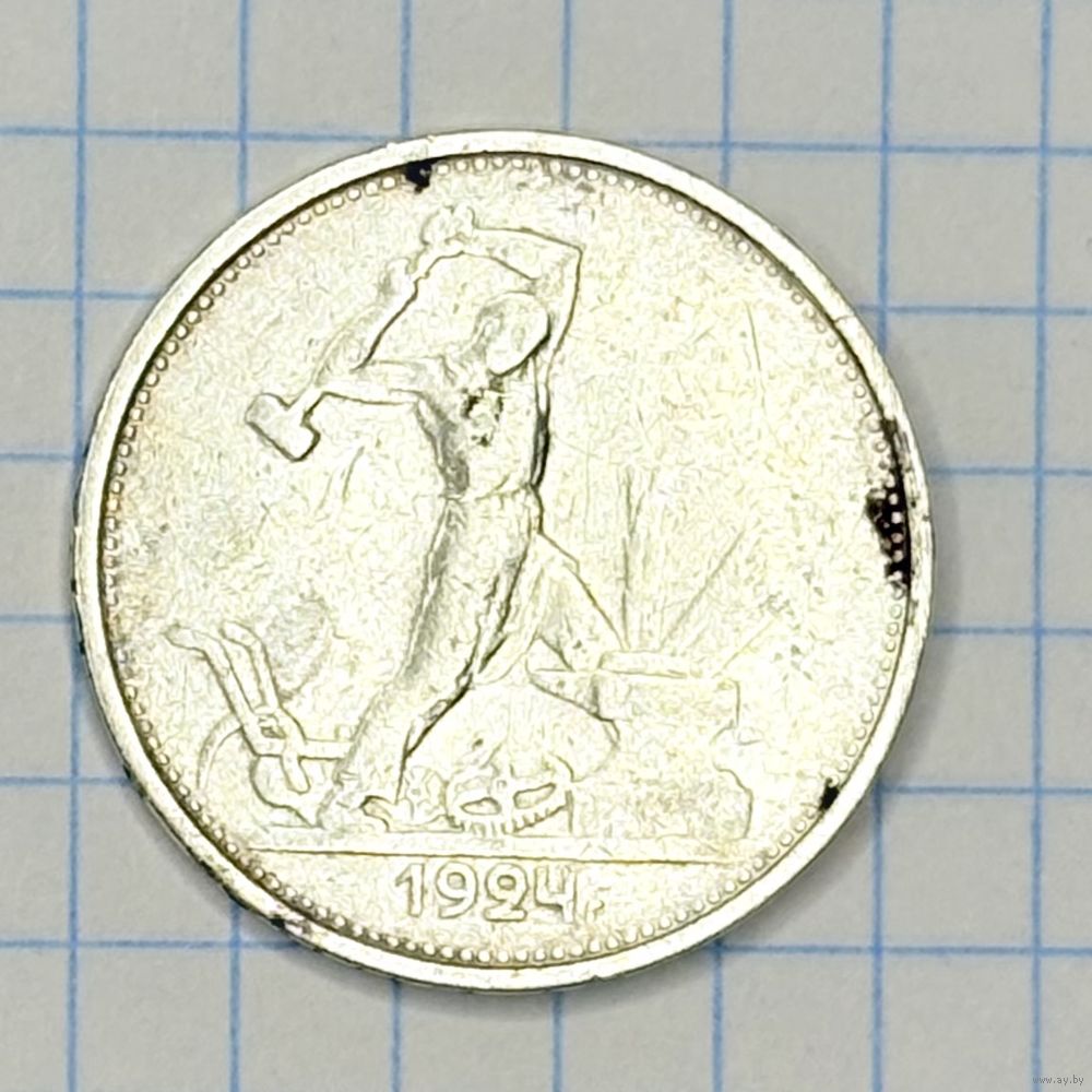С 1 РУБЛЯ! МОНЕТА ОДИН ПОЛТИННИК СССР 1924 СЕРЕБРО ЧИСТОГО СЕРЕБРА 9 ГРАММ